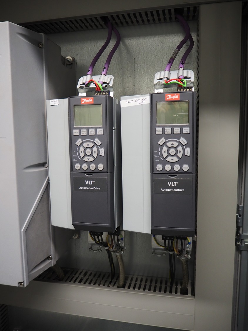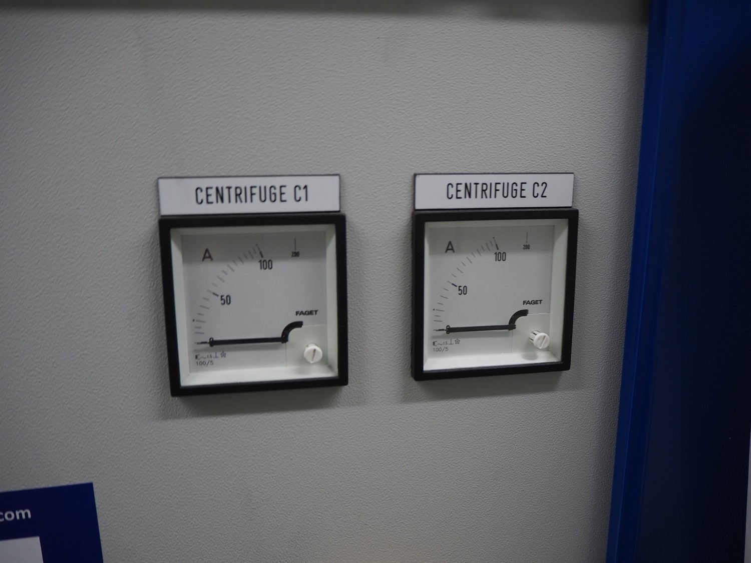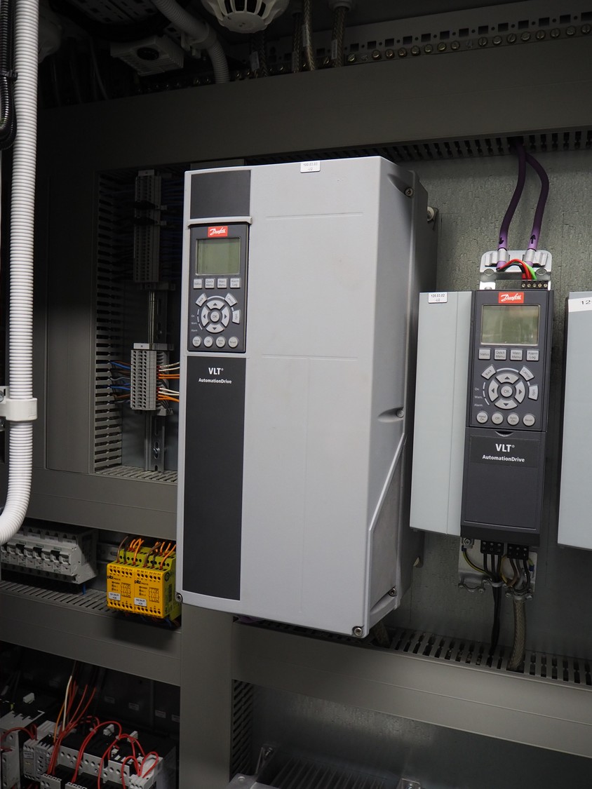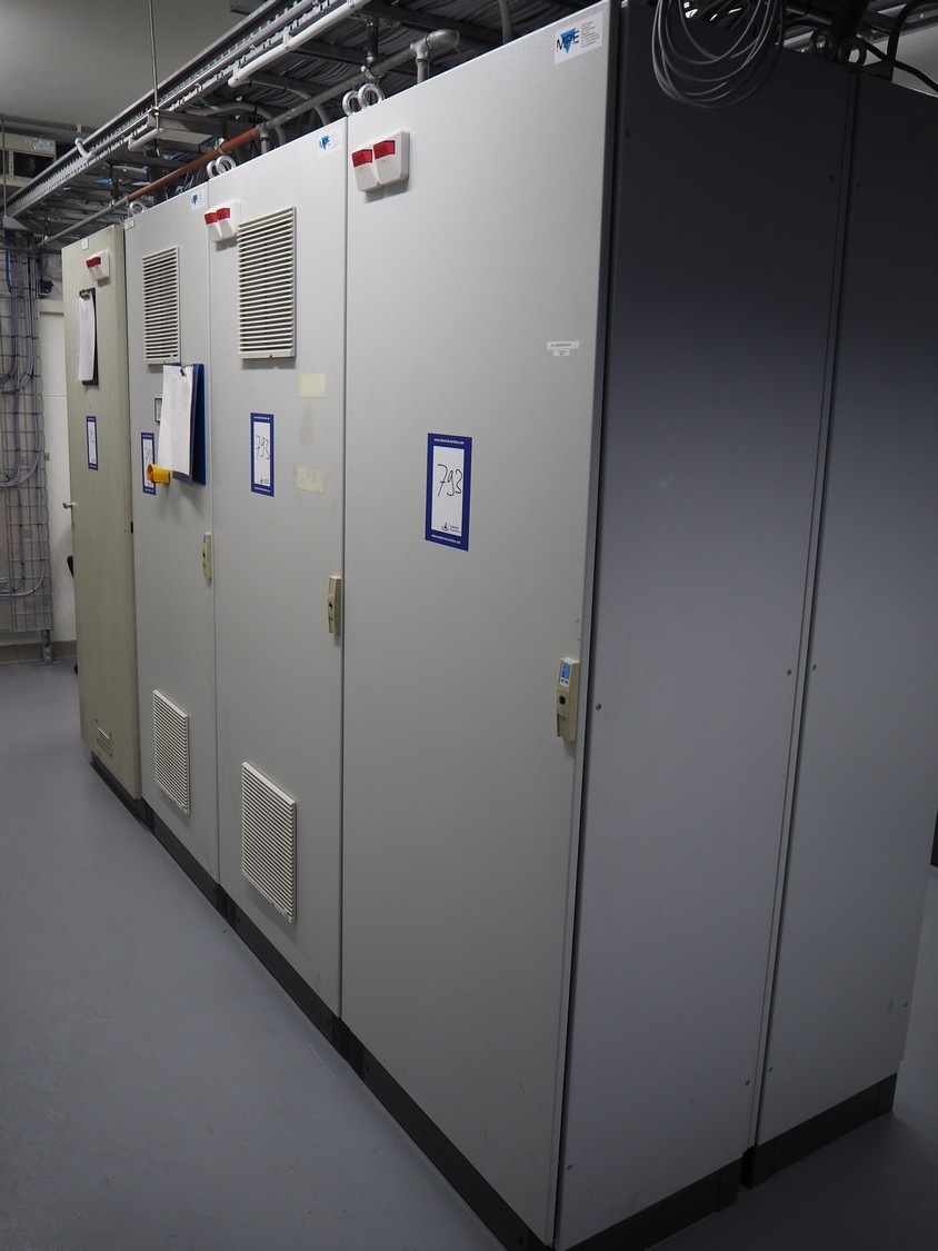 Steel switch cabinet for milk-cream separation line, dimensions: 2370 mm x 500 mm x 2100 mm.