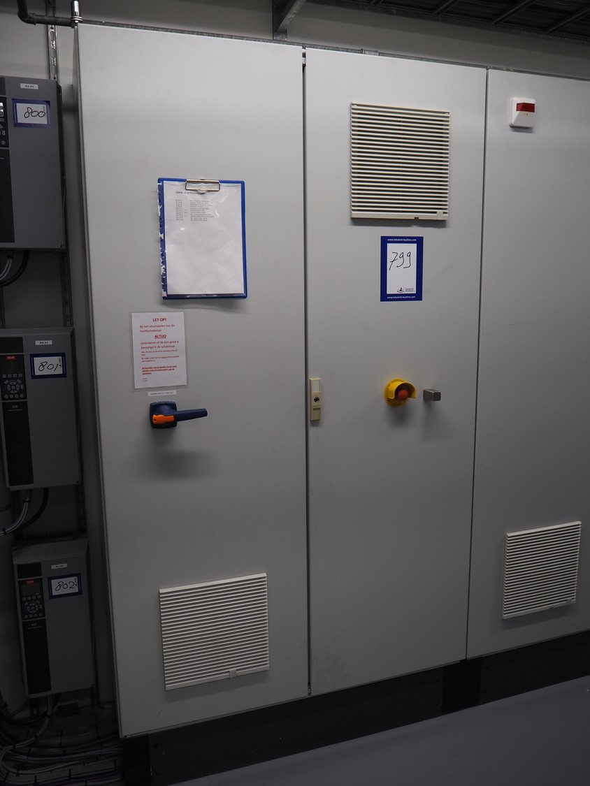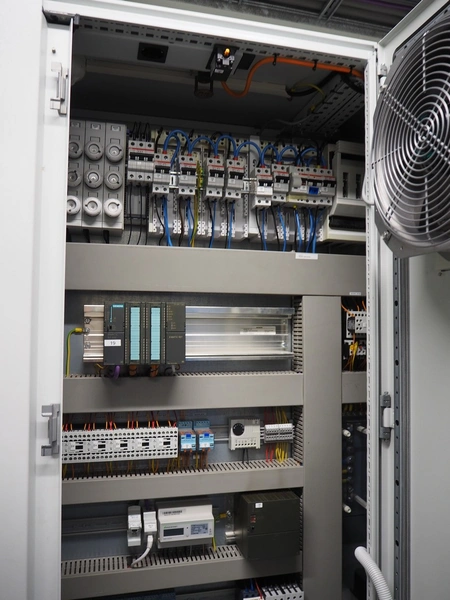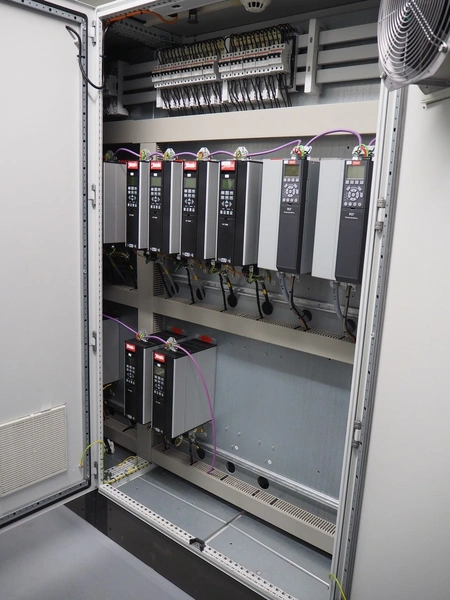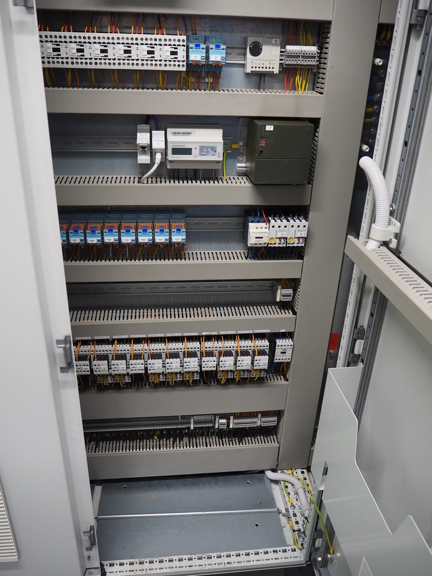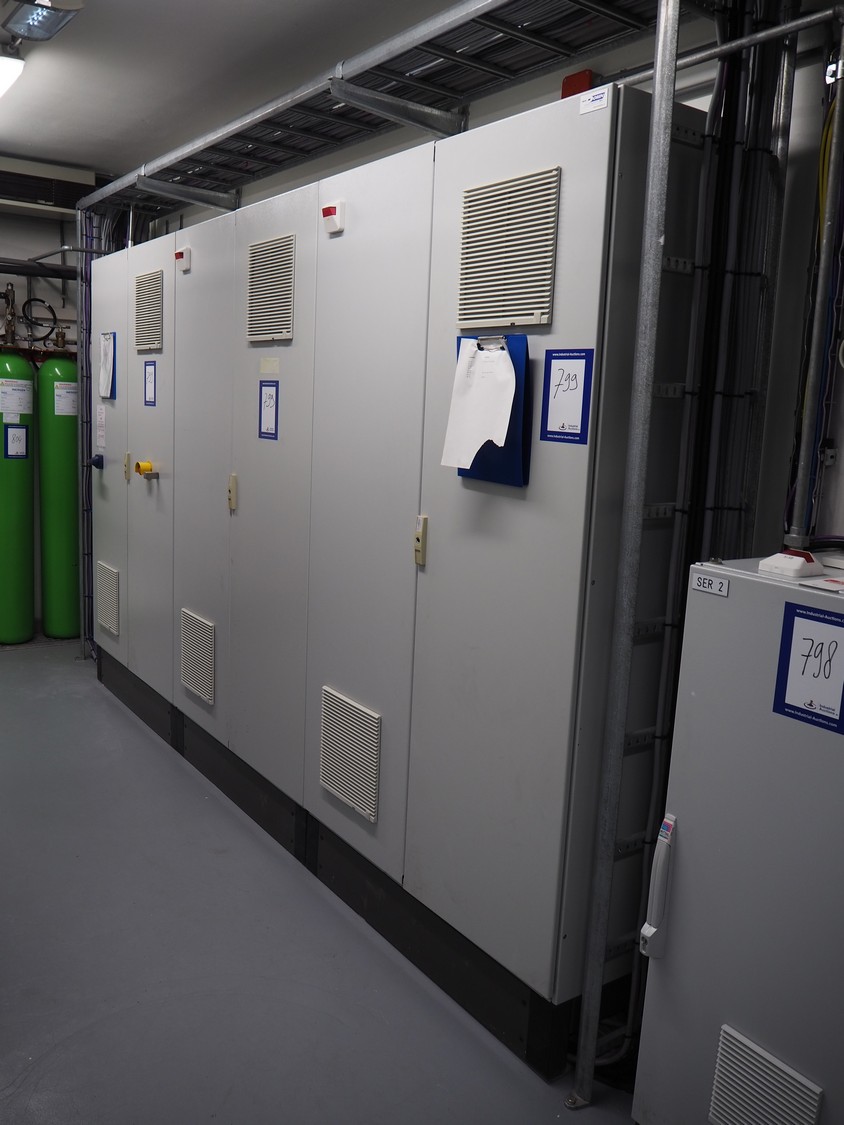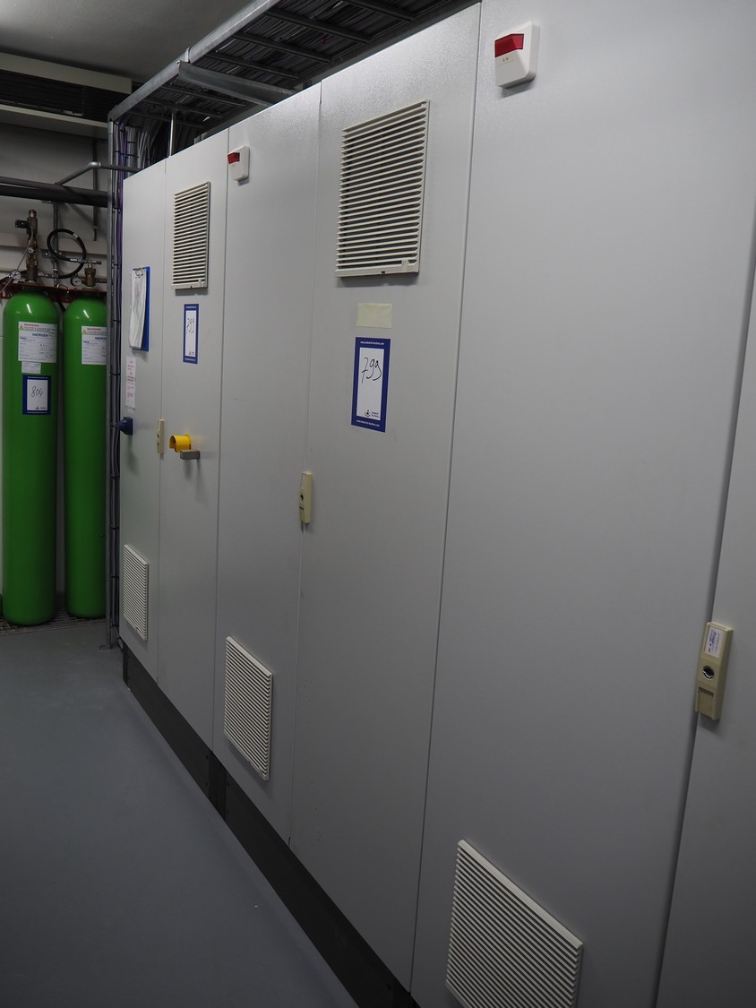 Steel switch cabinet, dimensions: 3600 mm x 500 mm x 2200 mm.