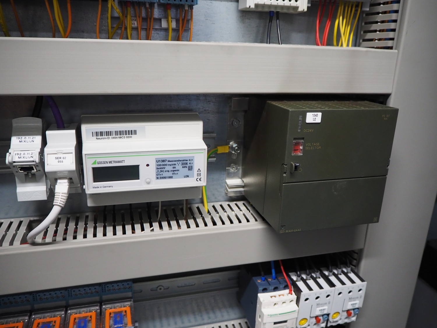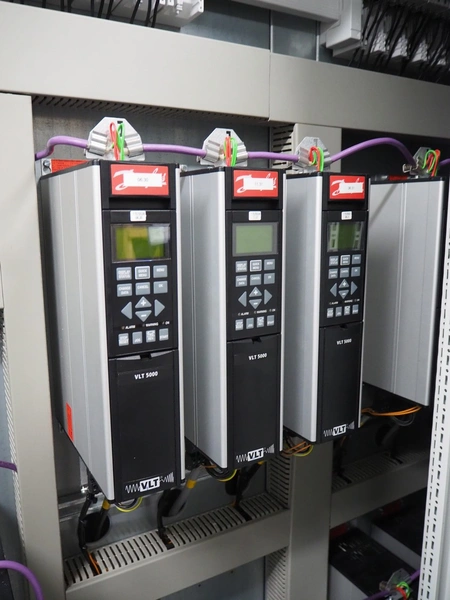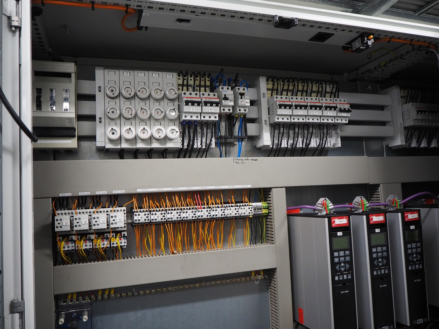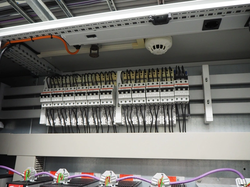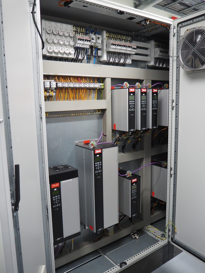 Steel switch cabinet, dimensions: 3600 mm x 500 mm x 2200 mm.