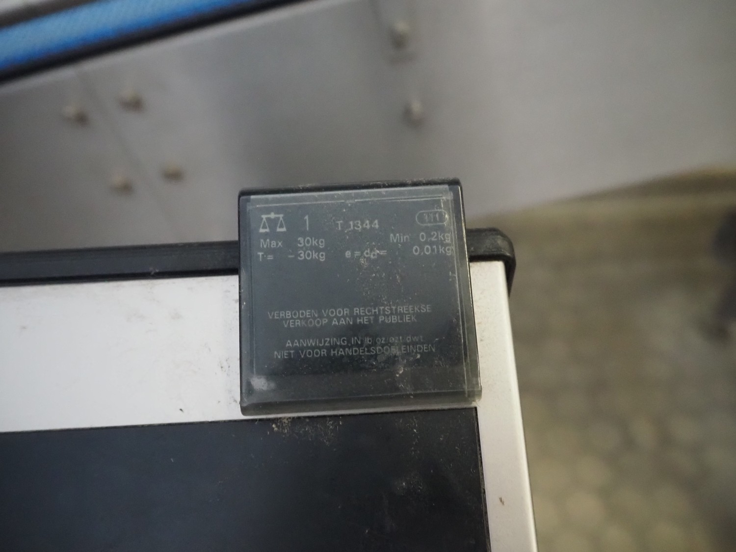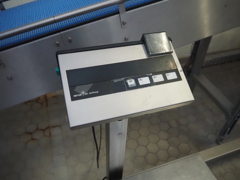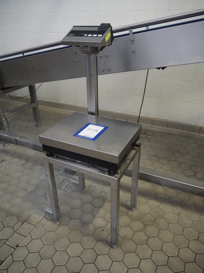 Mettler Toledo weighing scale on s/s frame, model: ID1 MultiRange, maximum capacity: 30 kg, minimum capacity: 0.2 kg, e=d= 0.01 kg, scale dimensions: 500 mm x 400 mm, total dimensions: 600 mm x 500 mm x 1300 mm.