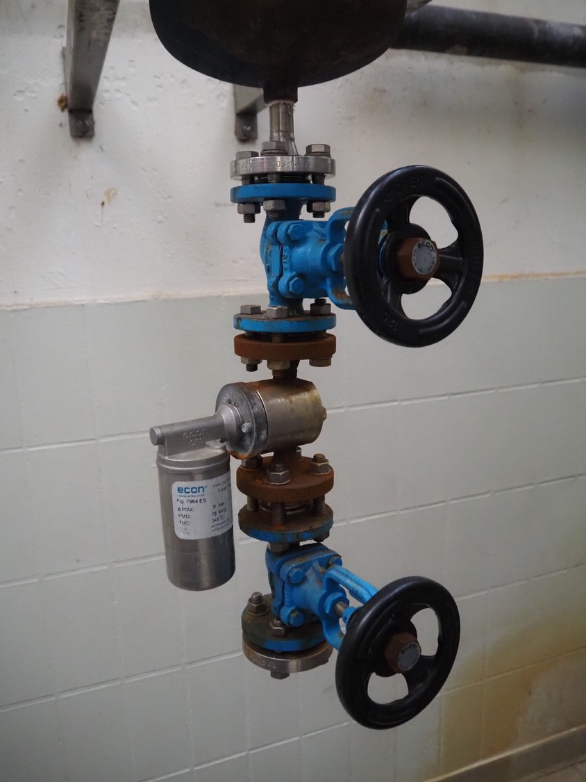 Steel vessel with various steam valves, dimensions: 500 mm x 200 mm x 1000 mm.
