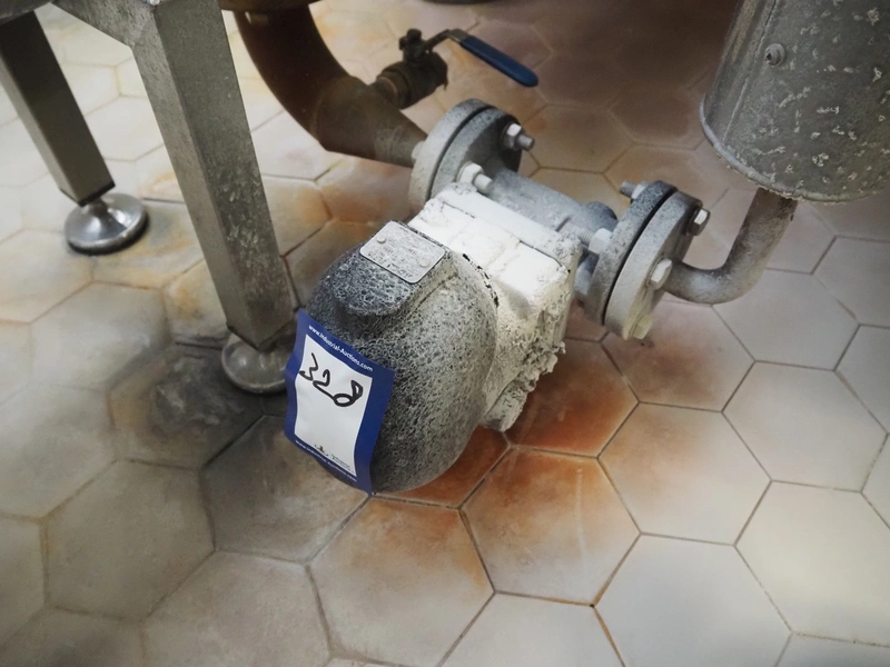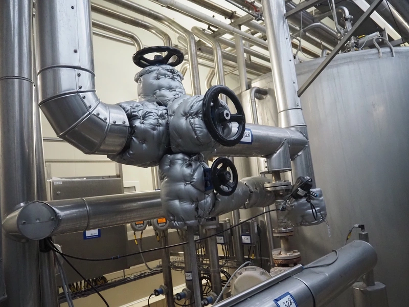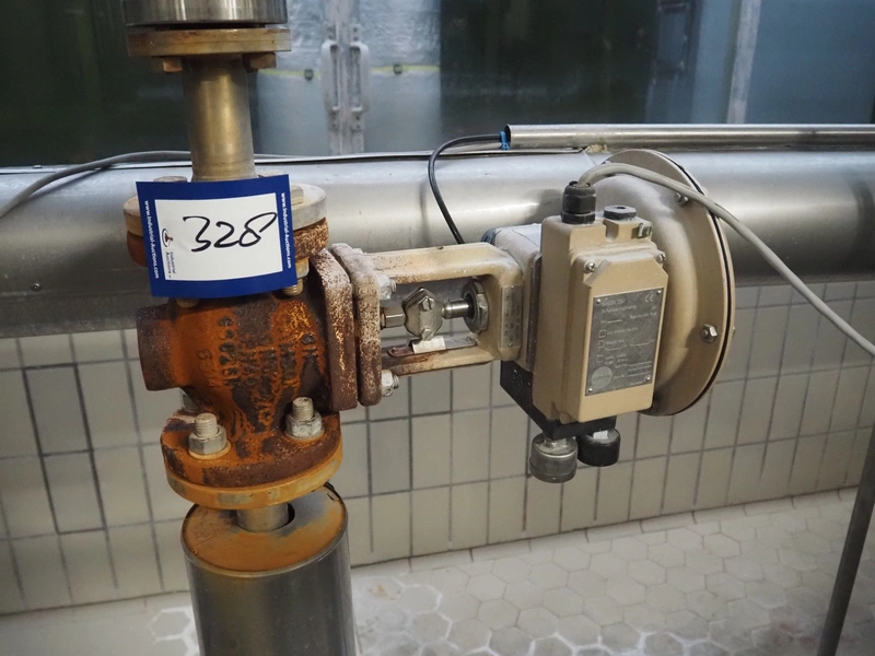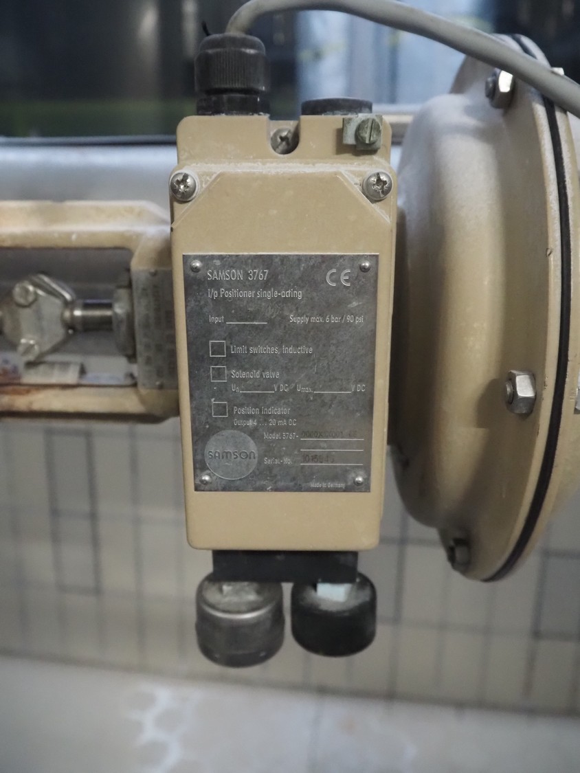 Steam distribution unit with various Samson valves, dimensions: 2100 mm x 750 mm x 2400 mm.