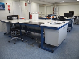 Laboratory inventory consisting of: 11 desks, 7 chairs, 5 white boards and 3 paper roll holders.0 bidsLot is closed