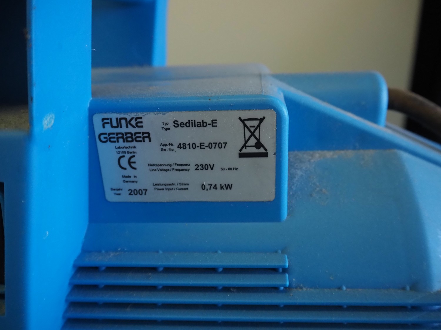Funke Gerber sediment tester, type: Sedilab-E, serial number: 4810-E-0707, year of construction: 2007, 230 V, 50/60 Hz, 0.74 kW, dimensions: 400 mm x 230 mm x 280 mm.