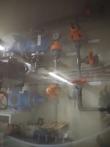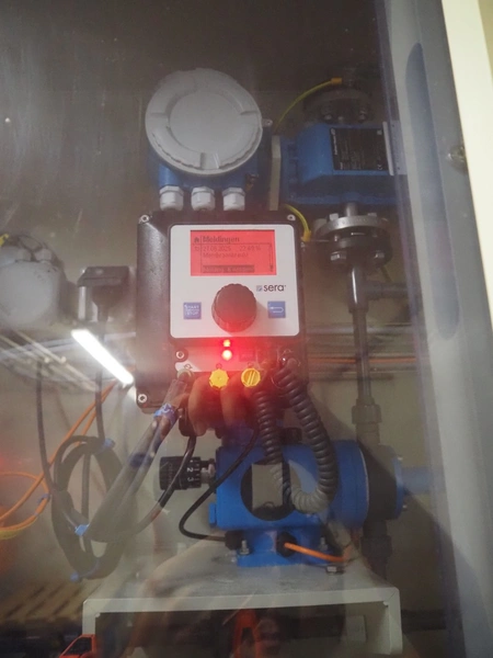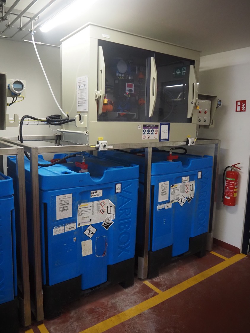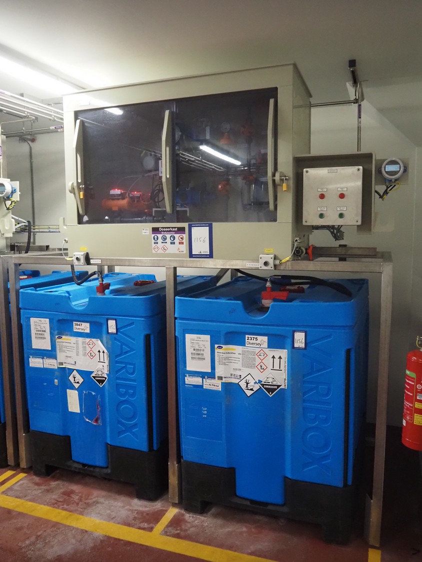 Altop dosing cabinet for endurochlor on s/s frame with 2 plastic tubs, dimensions: 2400 mm x 1300 mm x 2550 mm.