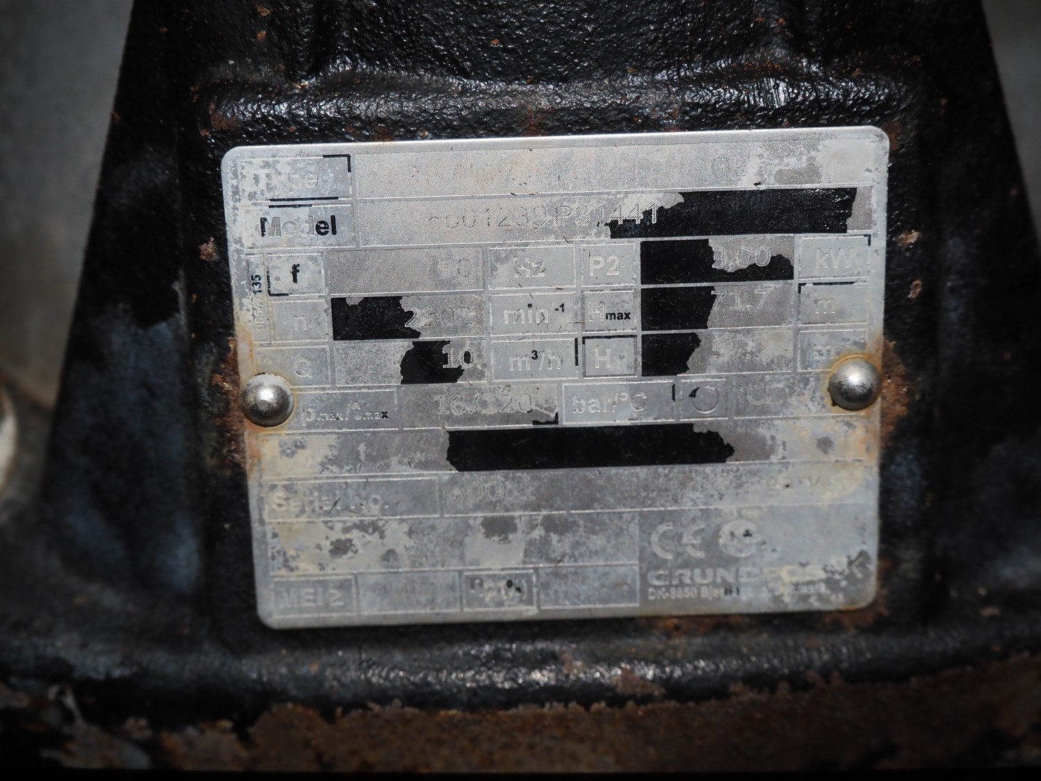 Grundfos centrifugal pump, capacity: 10 m³/h, dimensions: 300 mm x 200 mm x 1000 mm.