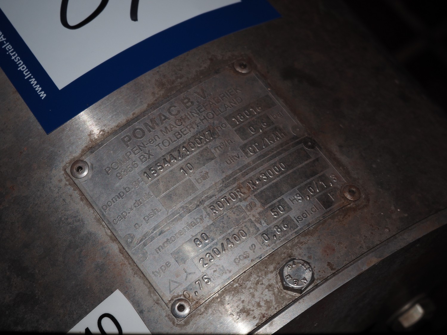 Pomac centrifugal pump, type: 15544/100X7, number: 18016, capacity: 10 m³/h, dimensions: 500 mm x 300 mm x 400 mm.