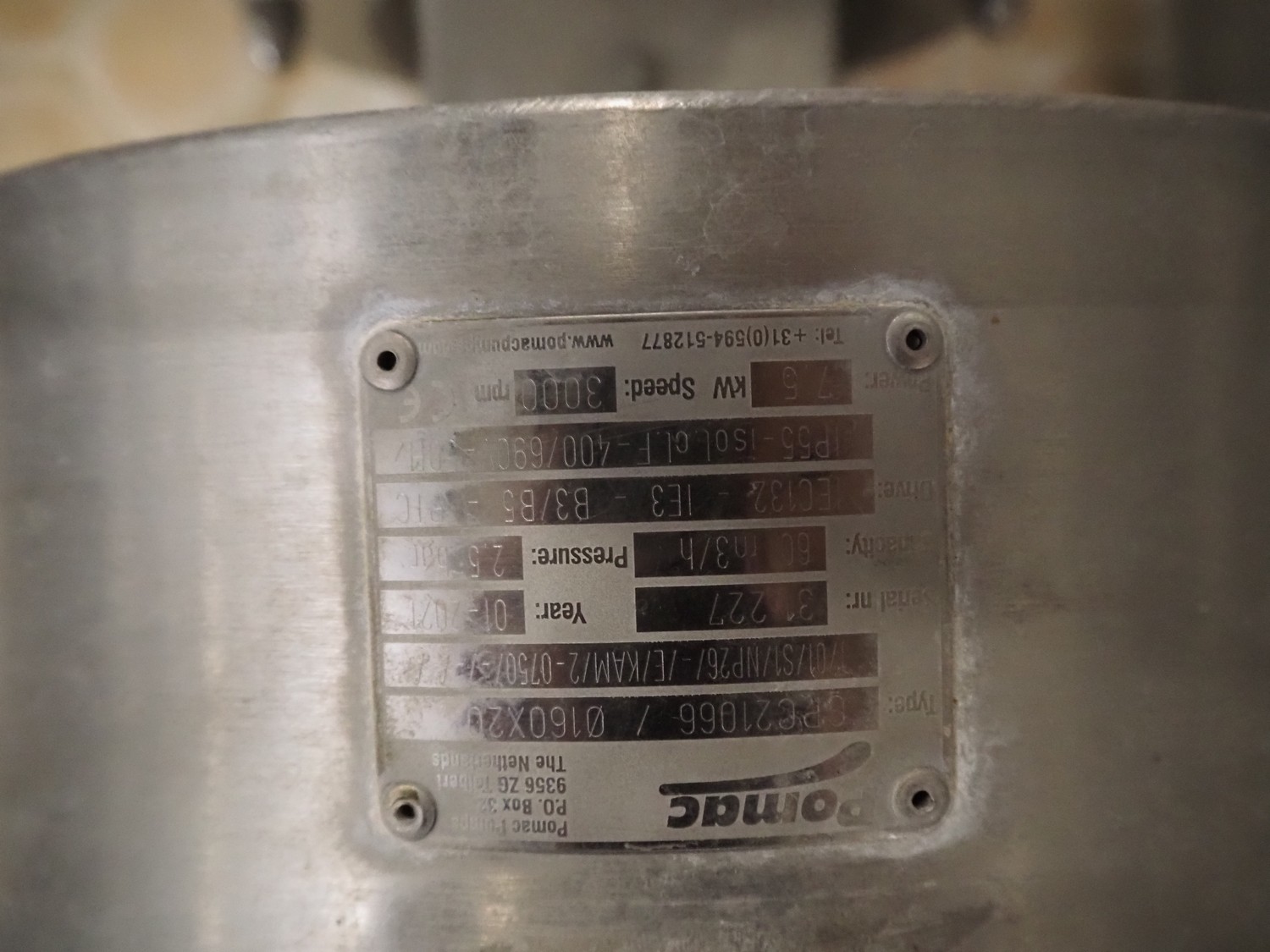 Pomac centrifugal pump, type: SPC21066 / Ø160X20, serial number: 31 227, year of construction: 01-2021, capacity: 60 m³/h, power: 7.5 kW, dimensions: 750 mm x 300 mm x 430 mm.