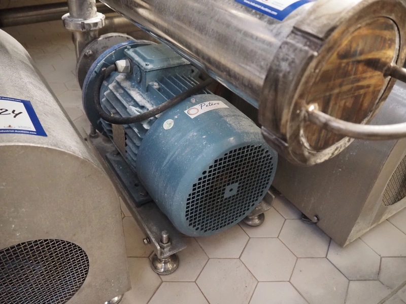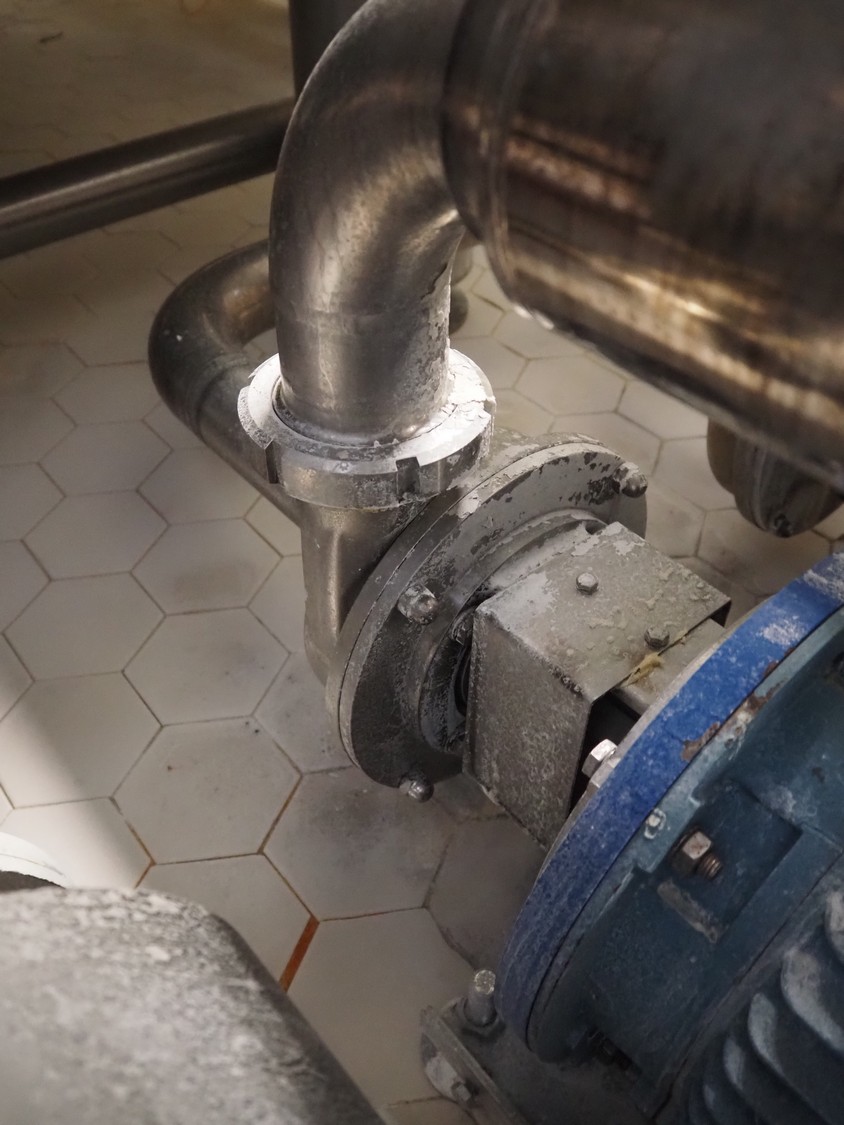 Pomac centrifugal pump with s/s filter housing, dimensions: 750 mm x 300 mm x 400 mm.