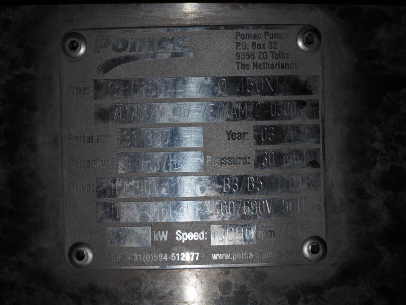 Pomac centrifugal pump, type: CPC16044 / Ø 150x14, serial number: 31 337, year of construction: 03/2021, capacity: 9 m³/h, dimensions: 600 mm x 250 mm x 400 mm.