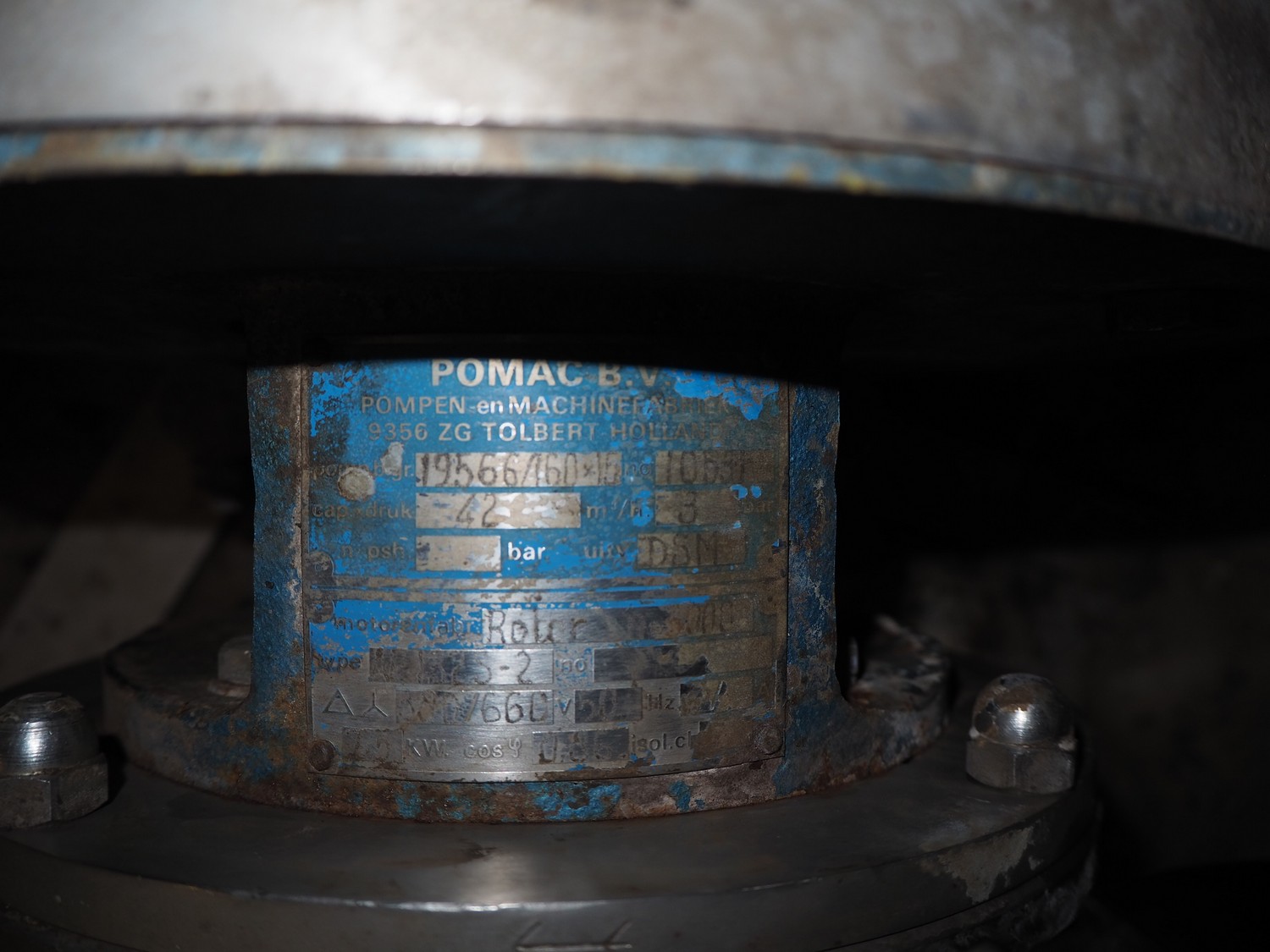 Pomac centrifugal pump, type: 1955/160, number: 10631, capacity: 42 m³/h, dimensions: 680 mm x 300 mm x 350 mm.