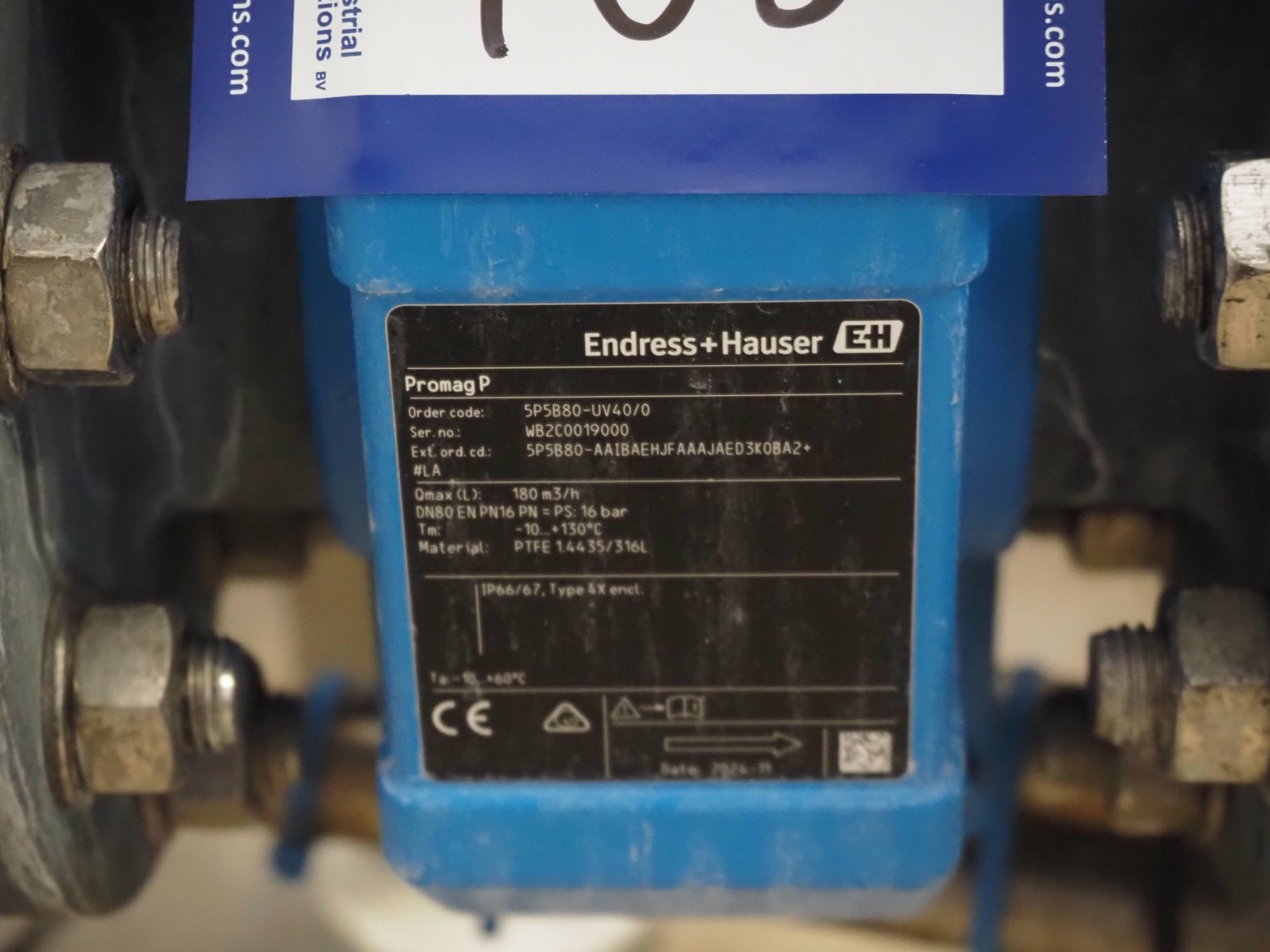 Endress + Hauser flowmeter, model: Promag P/Promag P, dimensions: 200 mm x 200 mm x 350 mm.
