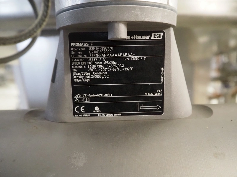 Endress + Hauser mass-flowmeter, model: Promass F/Promas 83, dimensions: 1200 mm x 250 mm x 600 mm.