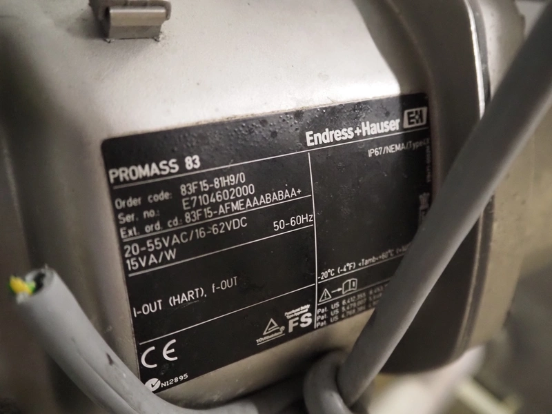 Endress + Hauser mass-flowmeter, model: Promass F/Promass 83, dimensions: 400 mm x 250 mm x 400 mm.