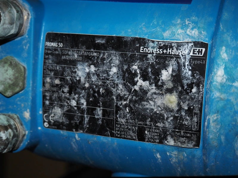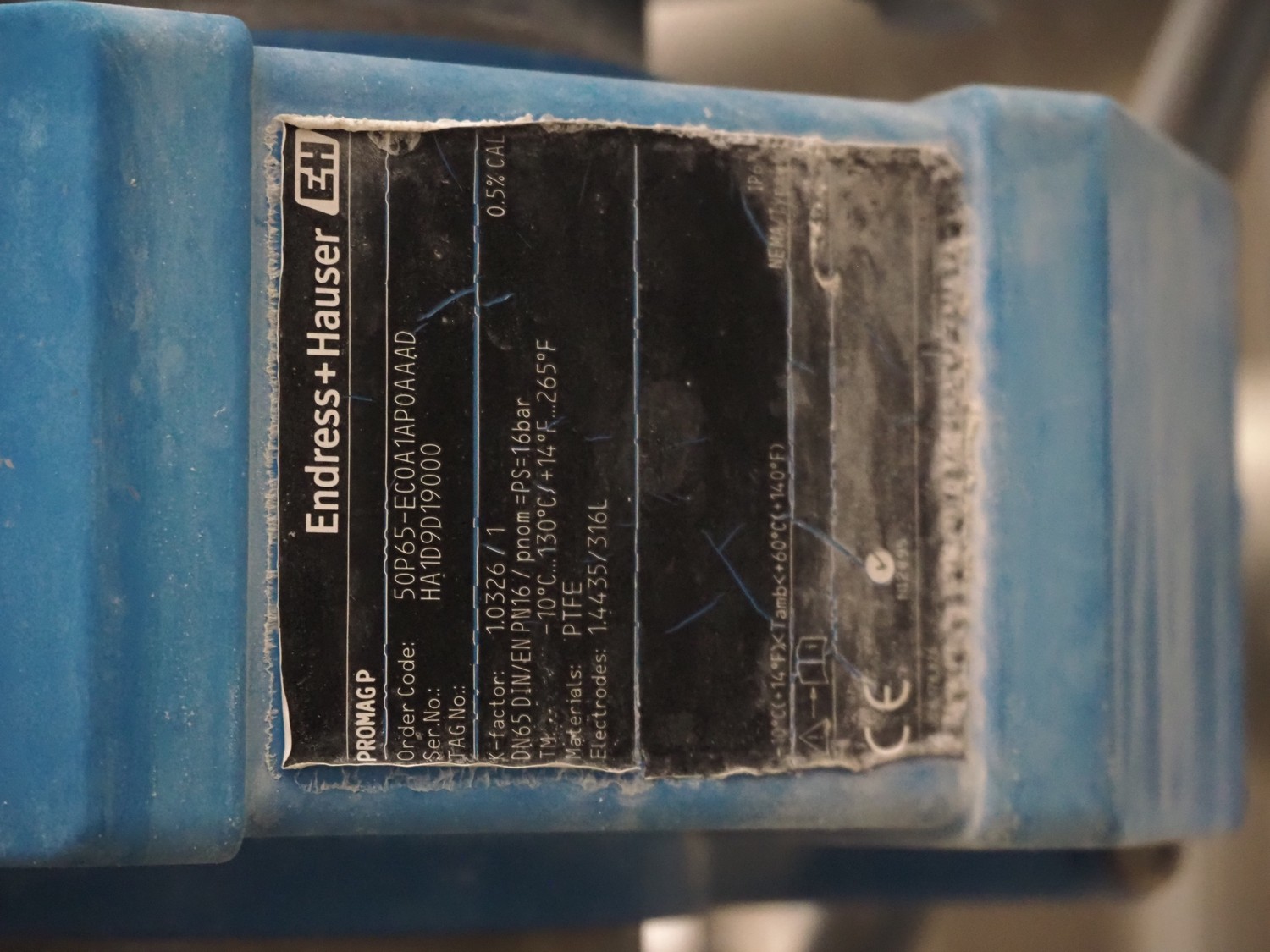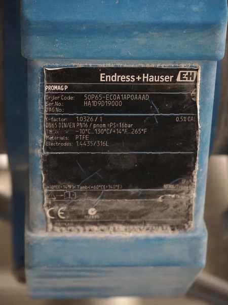 Endress + Hauser flowmeter, model: Promag P/Promag 50, dimensions: 400 mm x 250 mm x 250 mm.