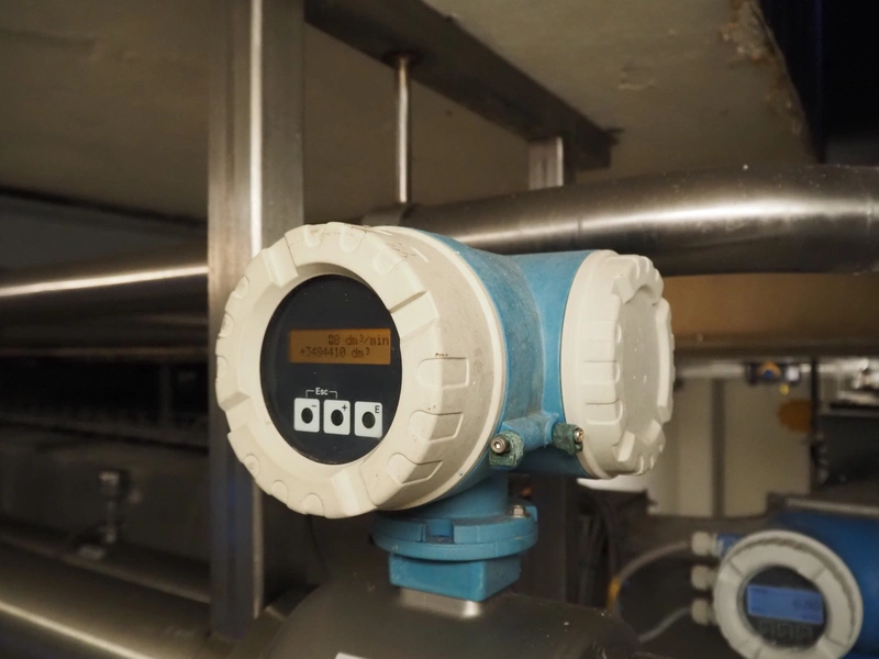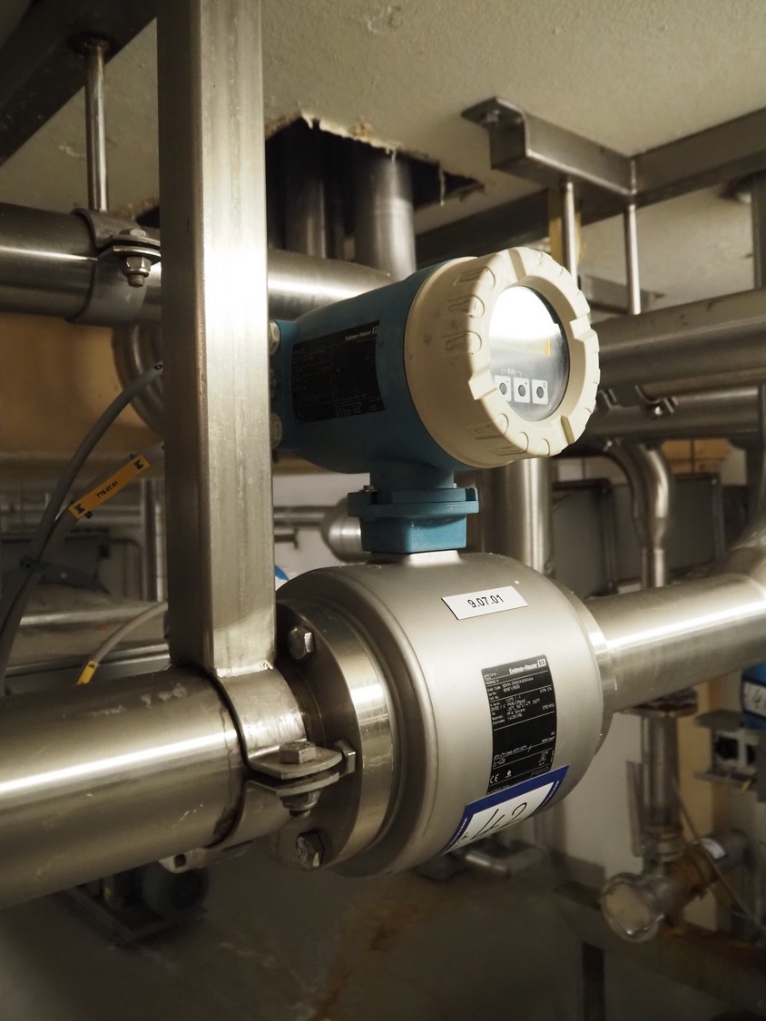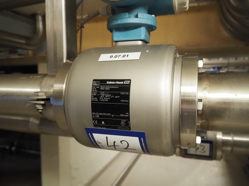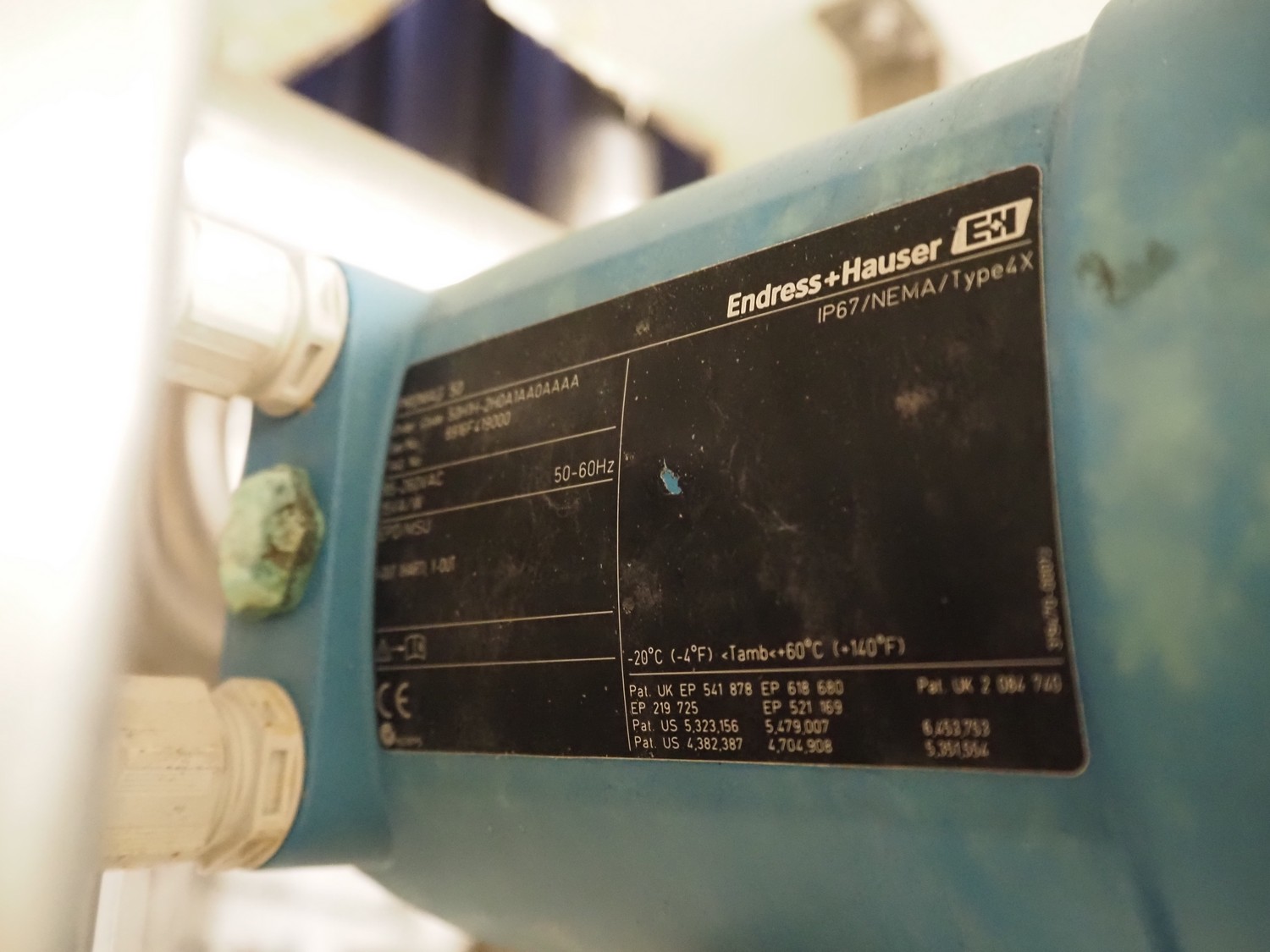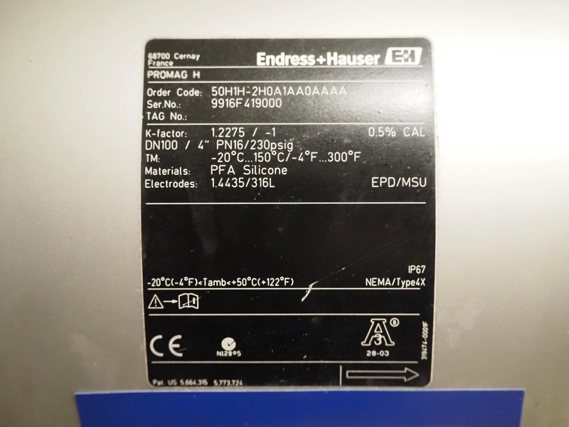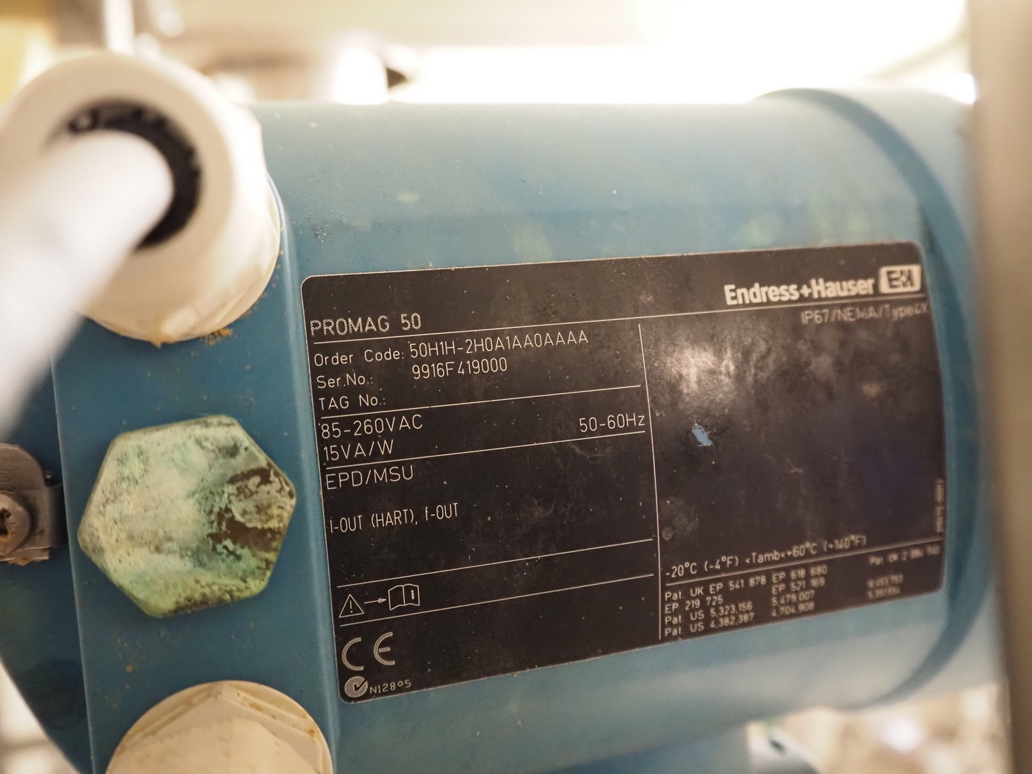 Endress + Hauser flowmeter, model: Promag 50/Promag H, dimensions: 250 mm x 250 mm x 450 mm.