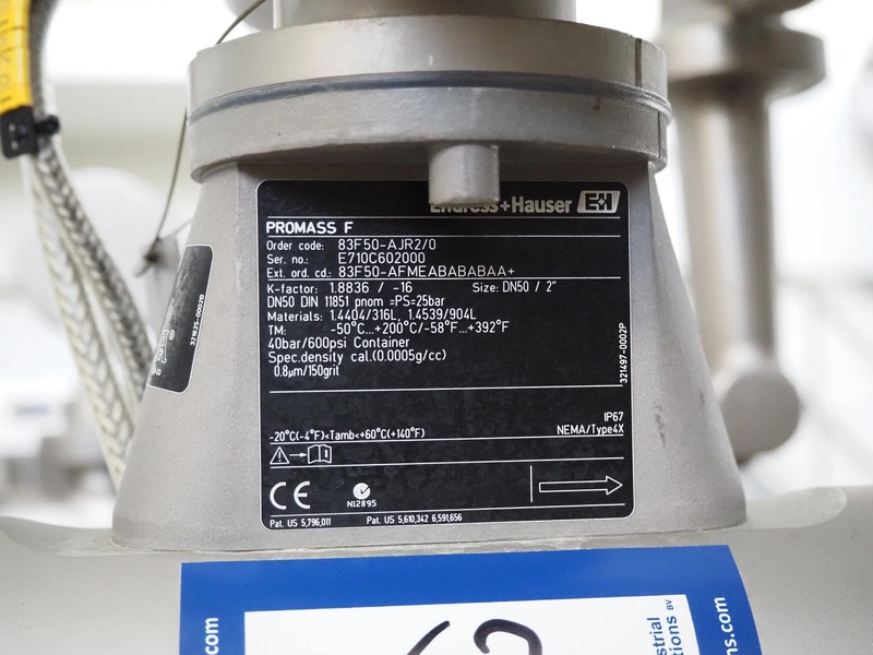 Endress + Hauser mass-flowmeter, model: Promass F/Promass 83, dimensions: 570 mm x 250 mm x 350 mm.