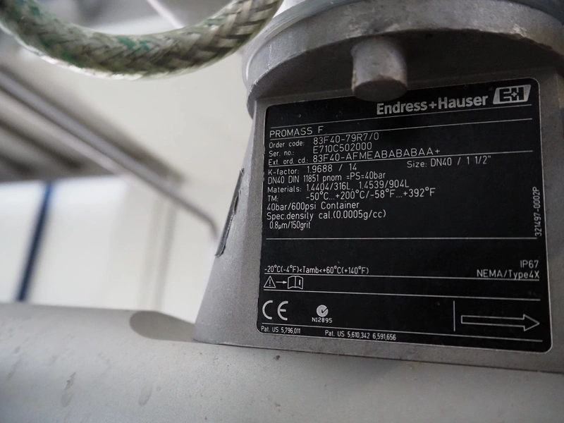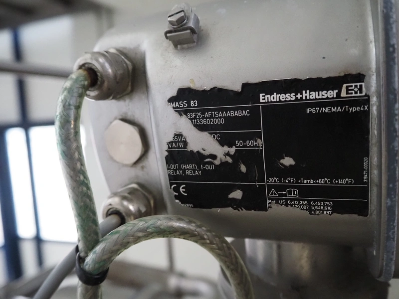 Endress + Hauser mass-flowmeter, model: Promass F/Promass 83, dimensions: 570 mm x 250 mm x 350 mm.