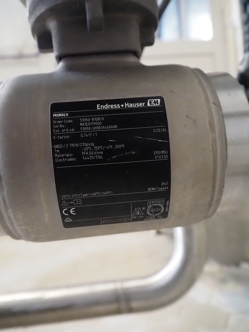 Endress + Hauser flowmeter, model: Promag H/Promag 53, dimensions: 220 mm x 150 mm x 350 mm.