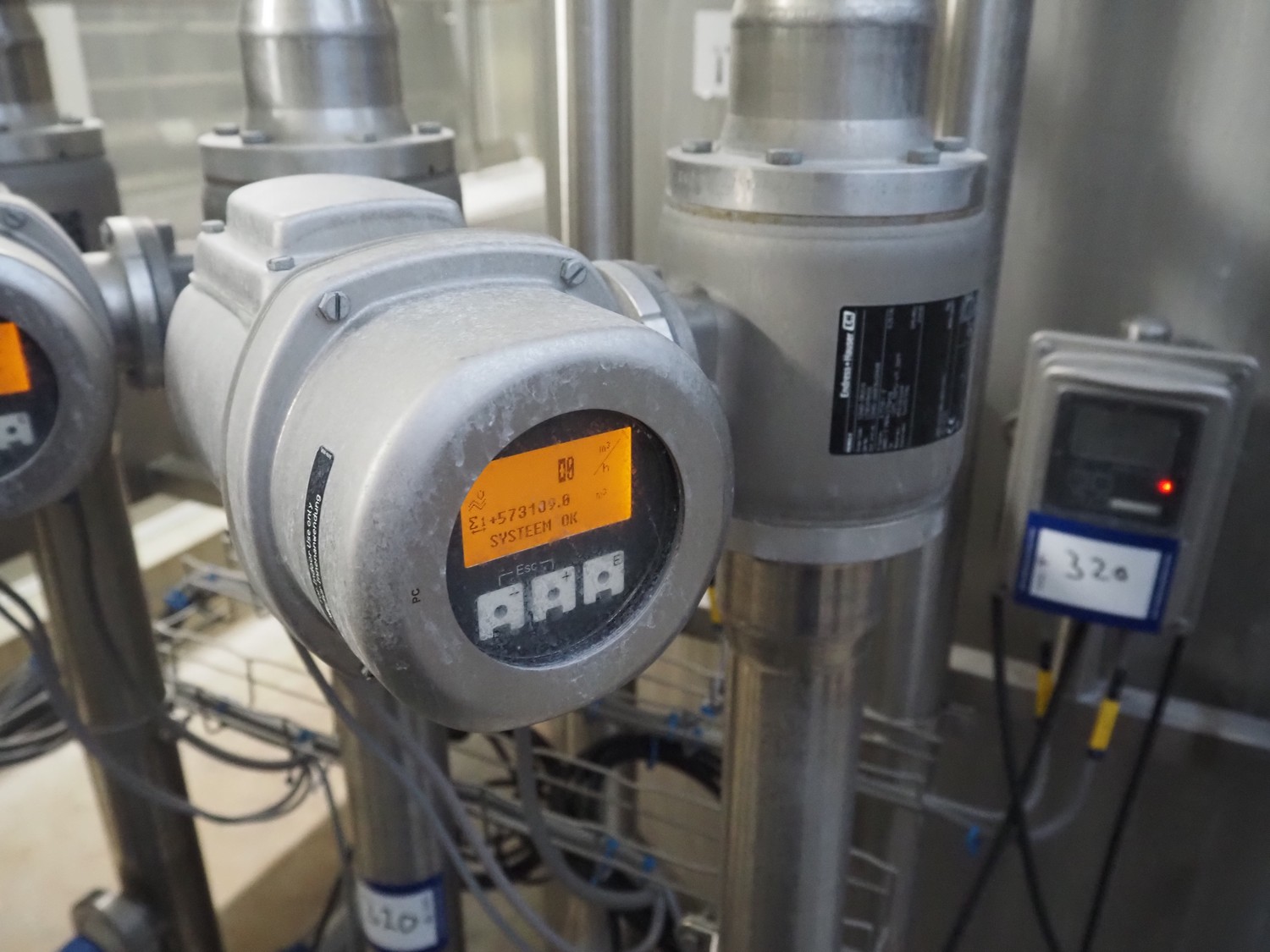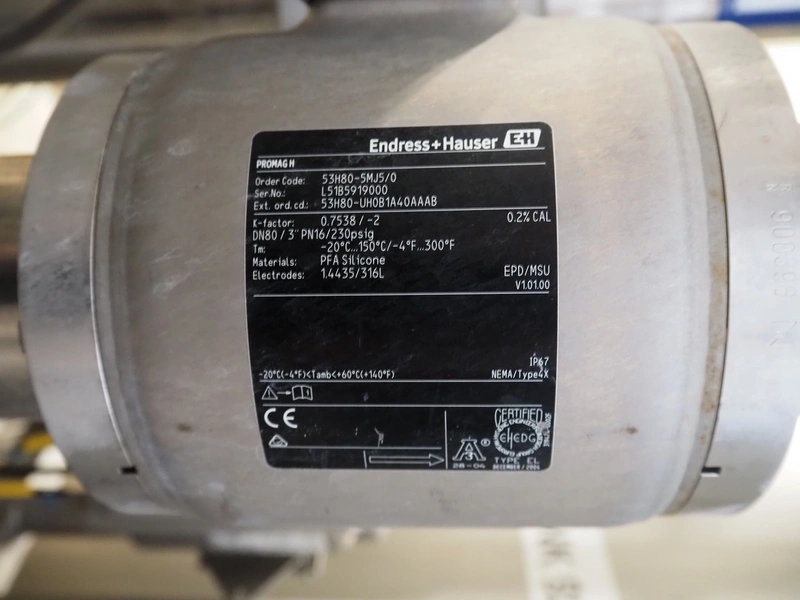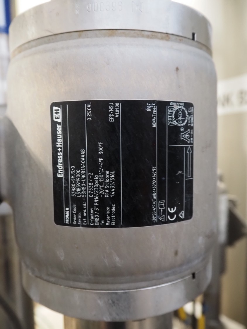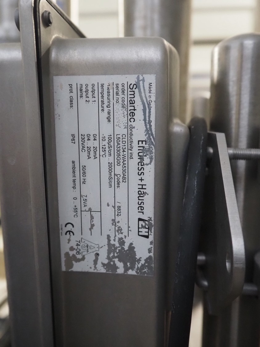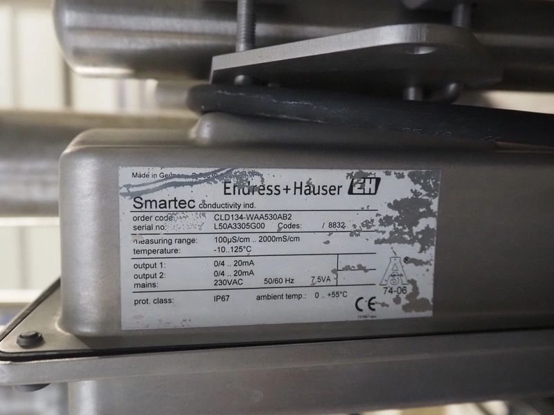 3 Endress + Hauser flowmeters, model: Promag H, including 3 Endress + Hauser conductivity meters, model: Smartec, total dimensions: 1200 mm x 700 mm x 1100 mm.