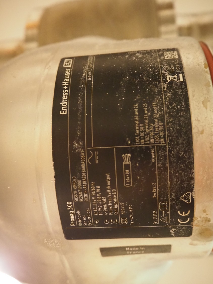 Endress + Hauser flowmeter, type: Promag H / Promag 300, year of construction: 12/2020, capacity: 282 m³/h, dimensions: 700 mm x 200 mm x 350 mm.