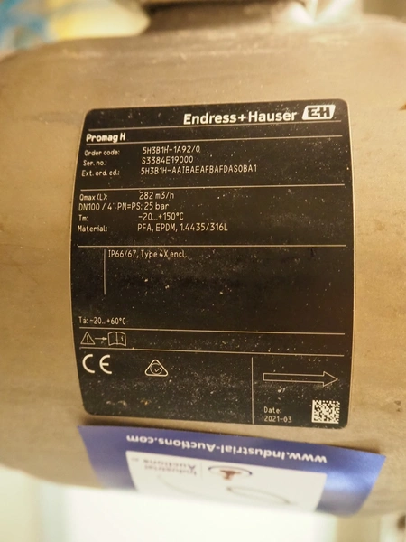 Endress + Hauser flowmeter, type: Promag H / Promag 300, year of construction: 03-2021, capacity: 282 m³/h, dimensions: 700 mm x 200 mm x 350 mm.