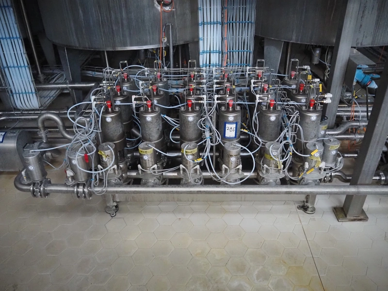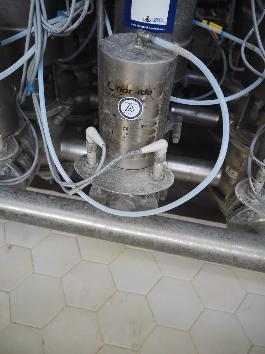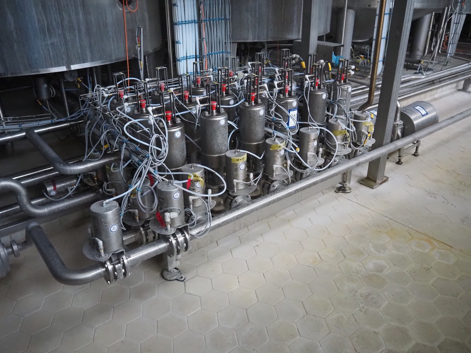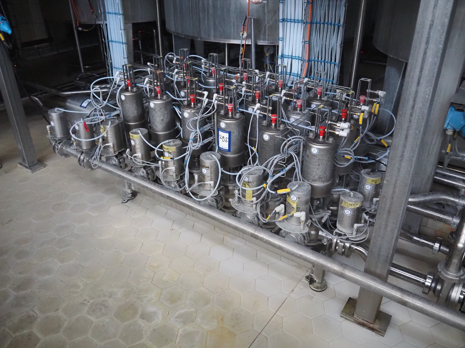 Manifold with approximately 30 Alfa Laval and Nocado valves, dimensions: 1800 mm x 850 mm x 820 mm.