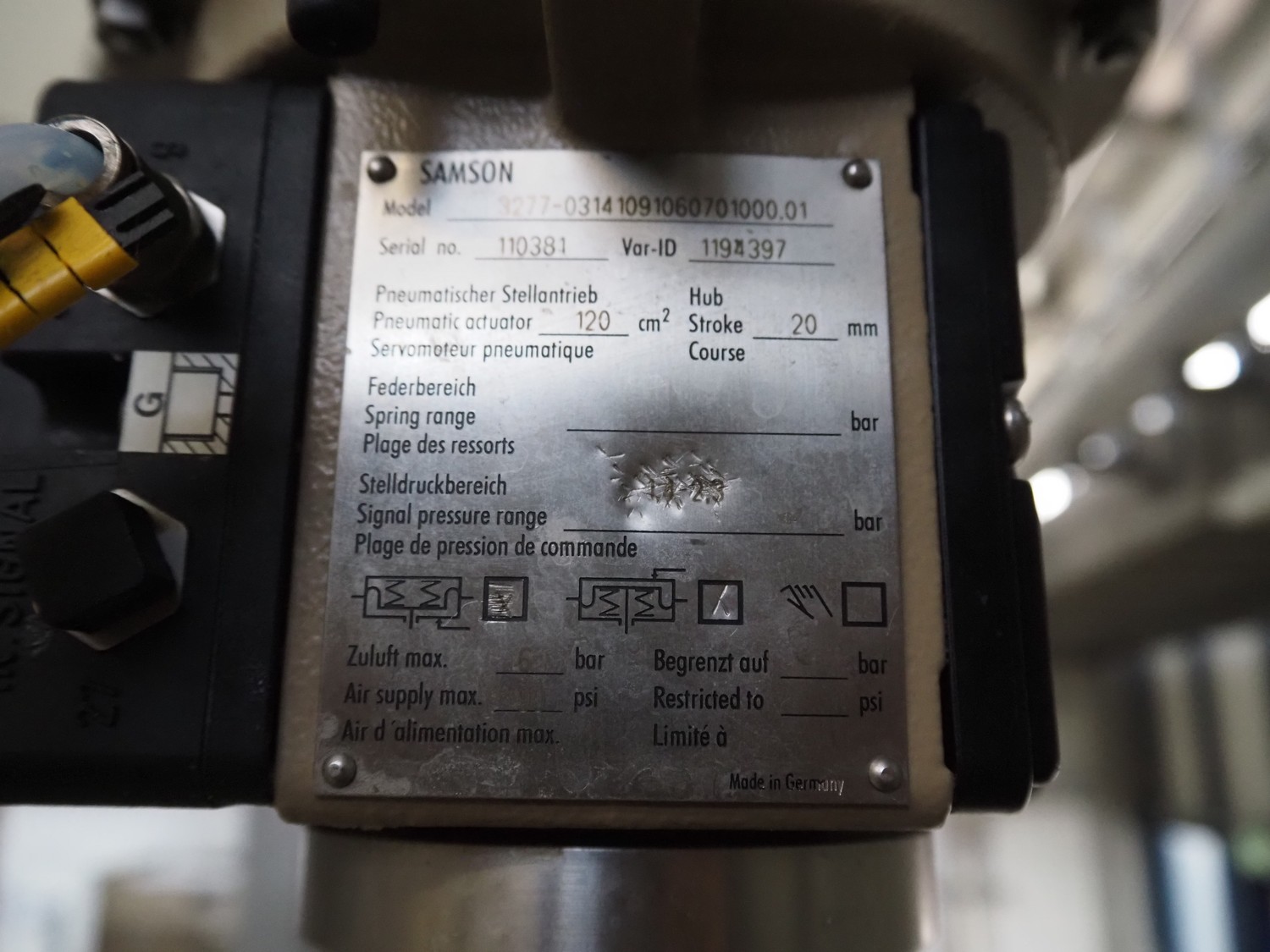 Samson valve, dimensions: 200 mm x 200 mm x 400 mm.