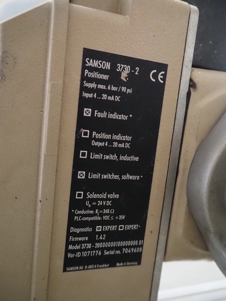 Samson valve, dimensions: 250 mm x 250 mm x 400 mm.