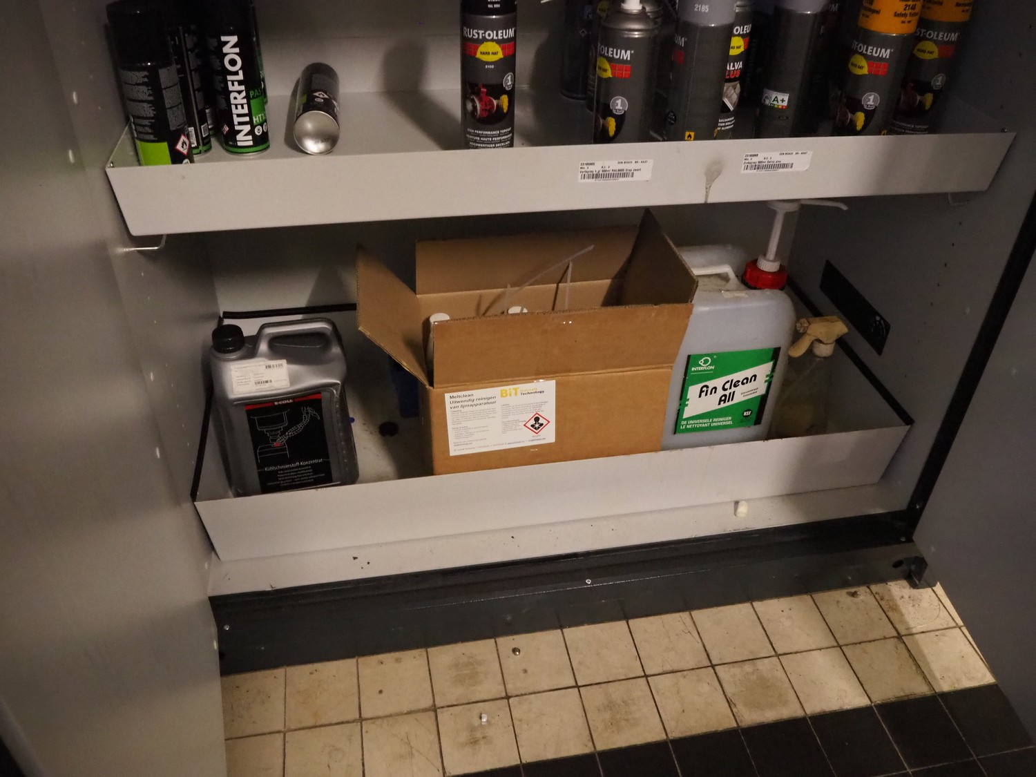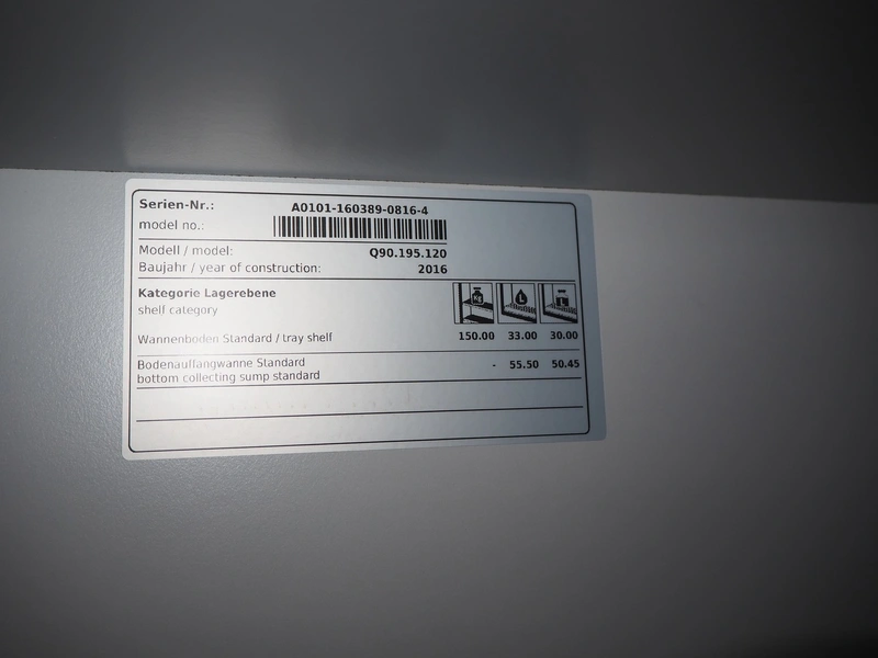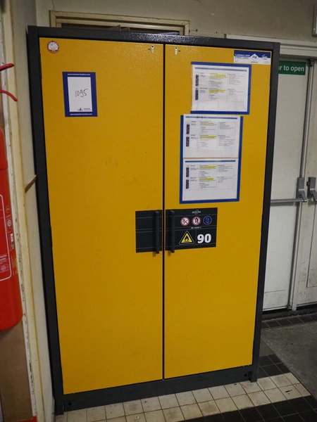 Asecos fire resistant cabinet, model: Q90.195.120, serial number: A0101-160389-0816-4, year of construction: 2016, dimensions: 1200 mm x 610 mm x 1950 mm. Including content.