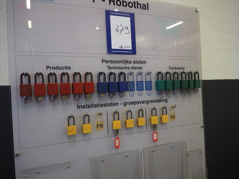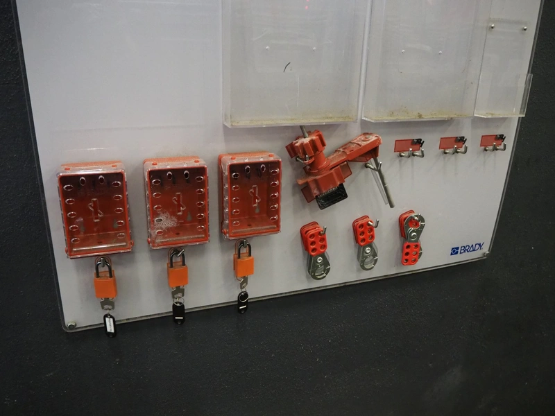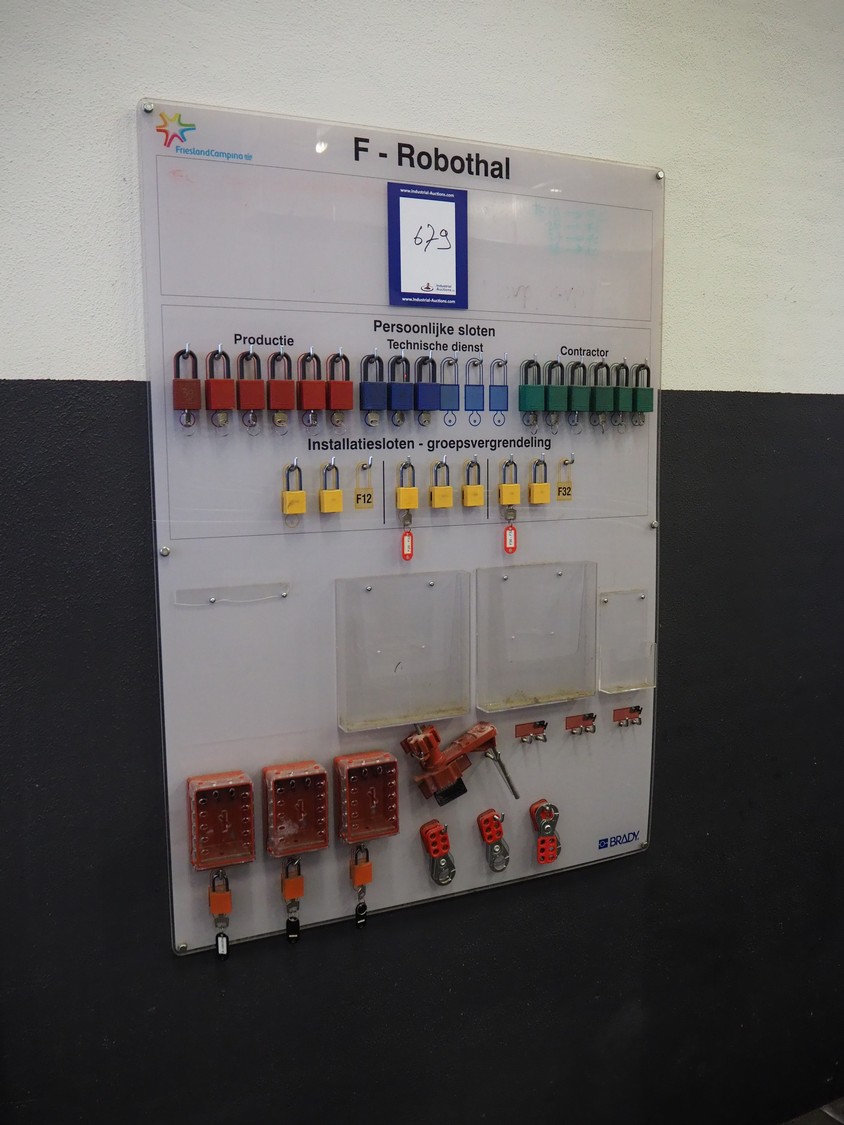 Lock-in / lock-out station, consisting of: 2 wall mounted boards with various locks, dimensions: 950 mm x 1300 mm.