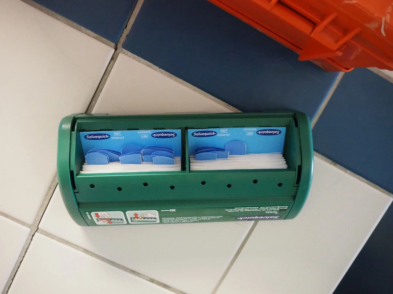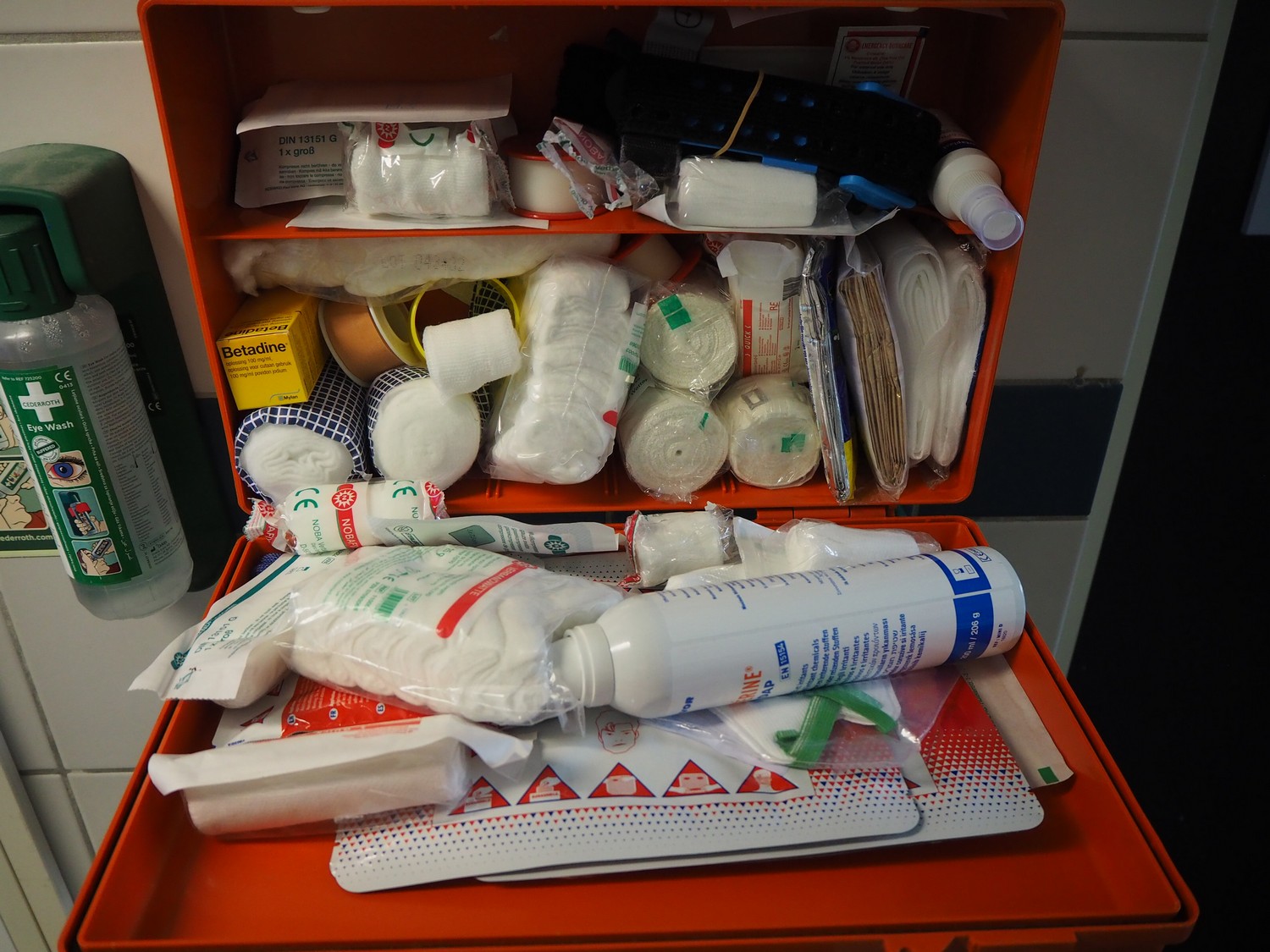 Plastic first aid kit, dimensions: 450 mm x 350 mm x 180 mm.