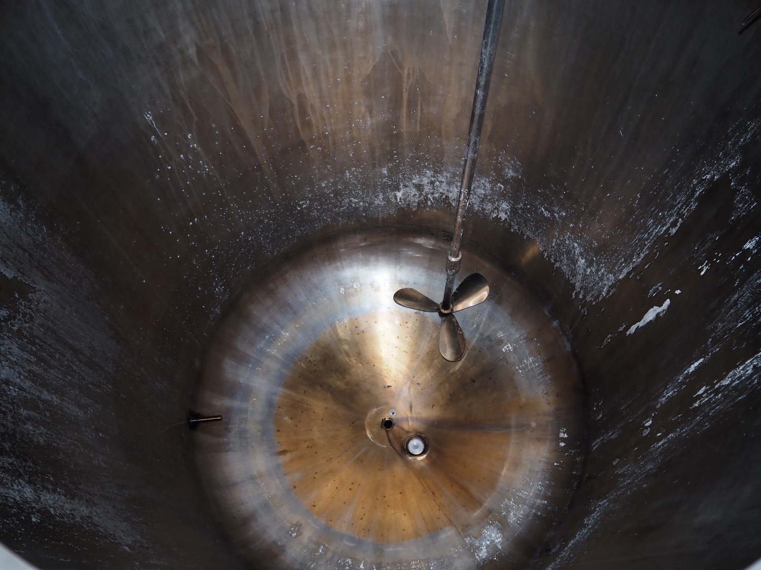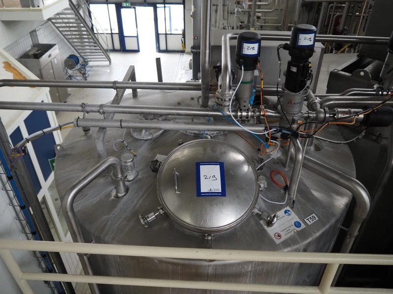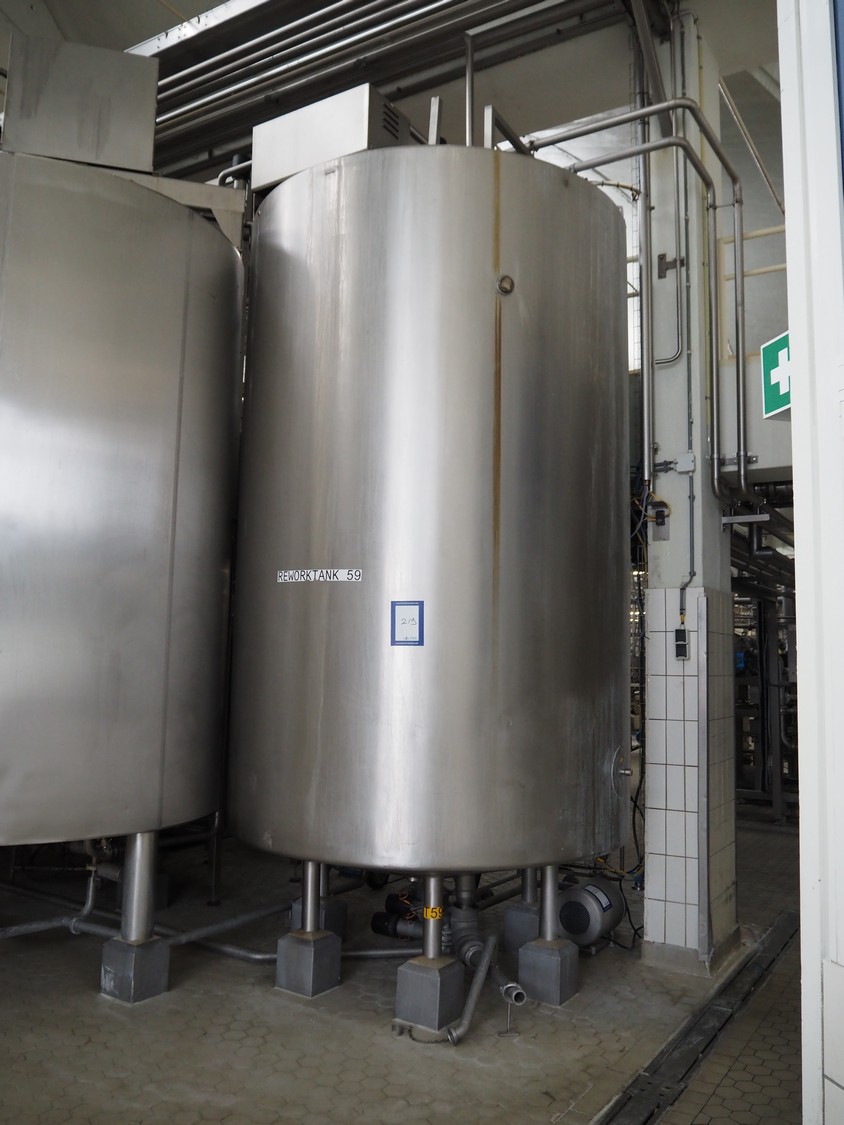 Terlet s/s double jacketed tank with mixer, volume: 8000 litres, dimensions: Ø 2100 mm x 4900 mm.