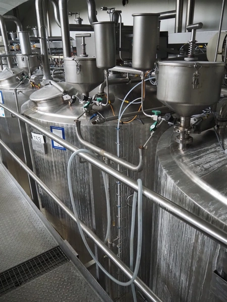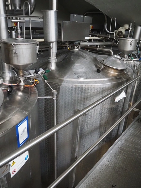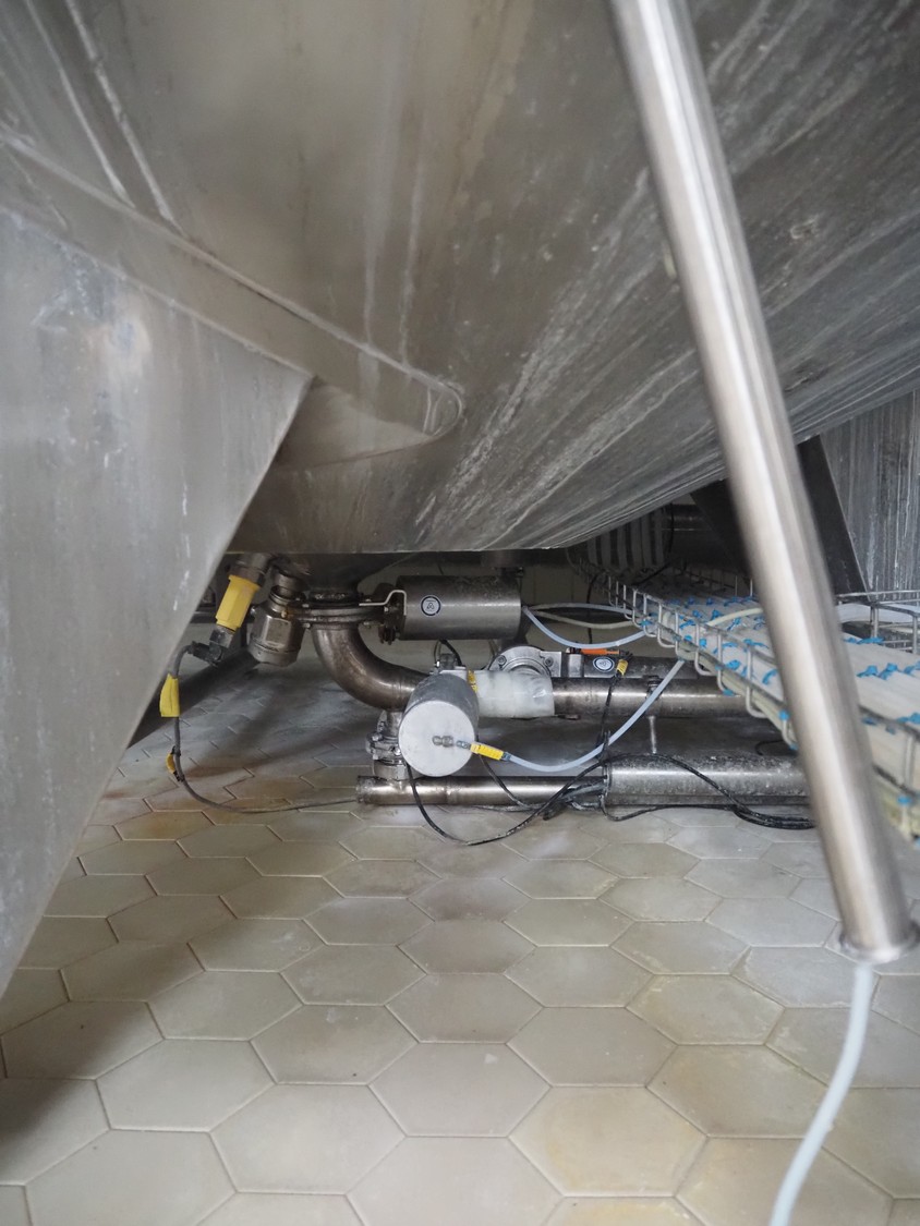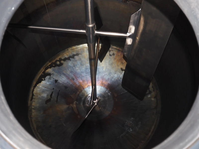 Ø-H-K s/s double jacketed tank with agitator, volume: approximately 4000 litres, dimensions: Ø 2100 mm x 3350 mm.