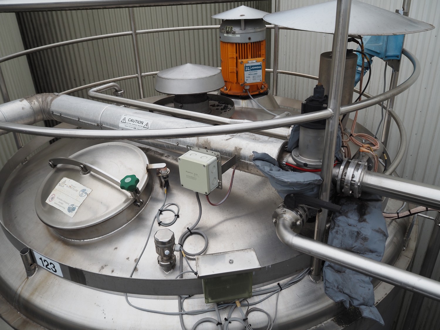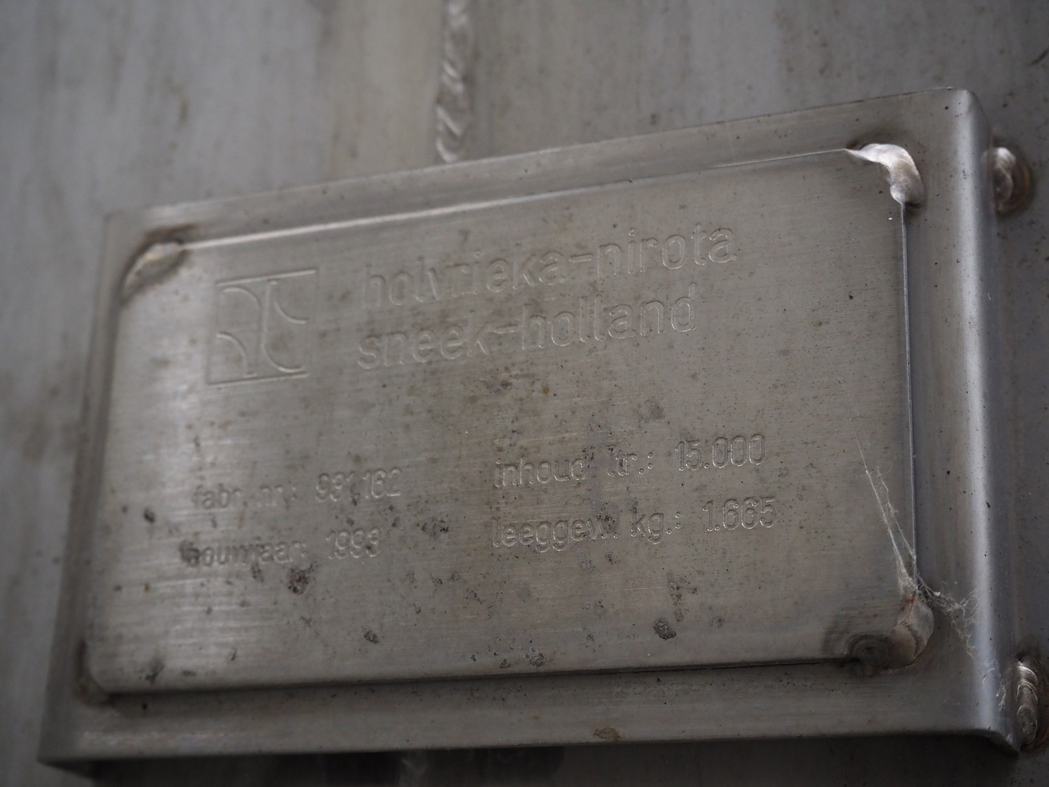 Holvrieka Nirota s/s tank with Jongia mixer and heating element for hot water, fabrication number: 931.162, year of construction: 1993, volume: 15.000 litres, empty weight: 1665 kg, dimensions: Ø 2500 mm x 5500 mm.