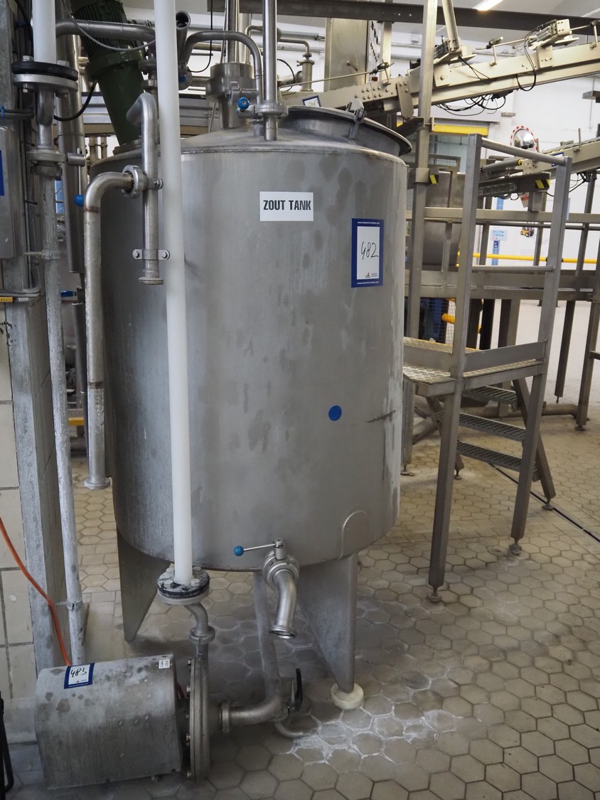 S/s salt tank with mixer, inside dimensions: 1050 mm x 1400 mm, total dimensions: 1100 mm x 1400 mm x 2300 mm.