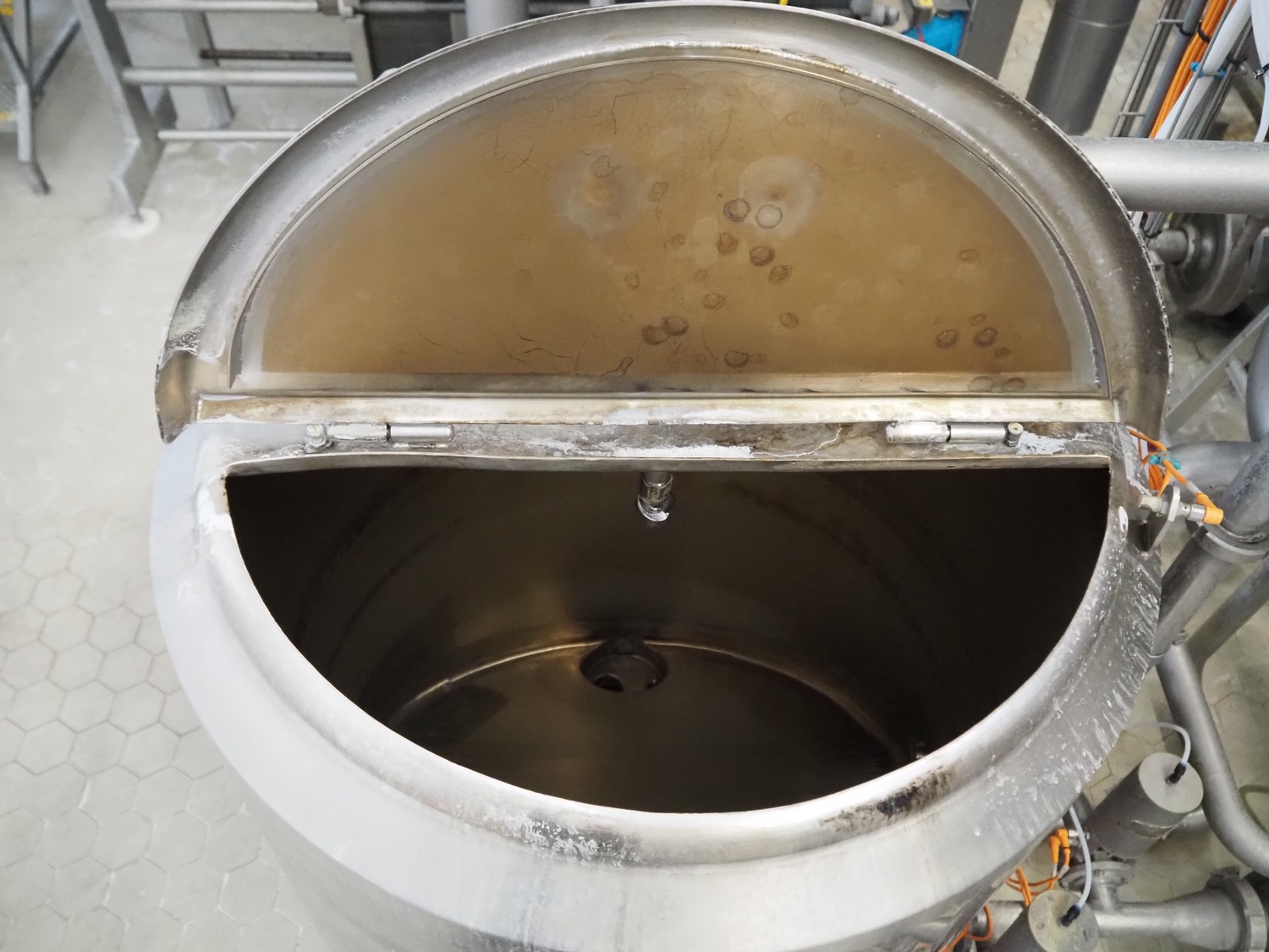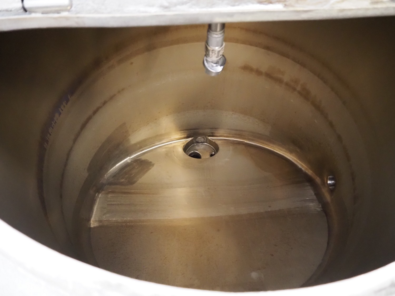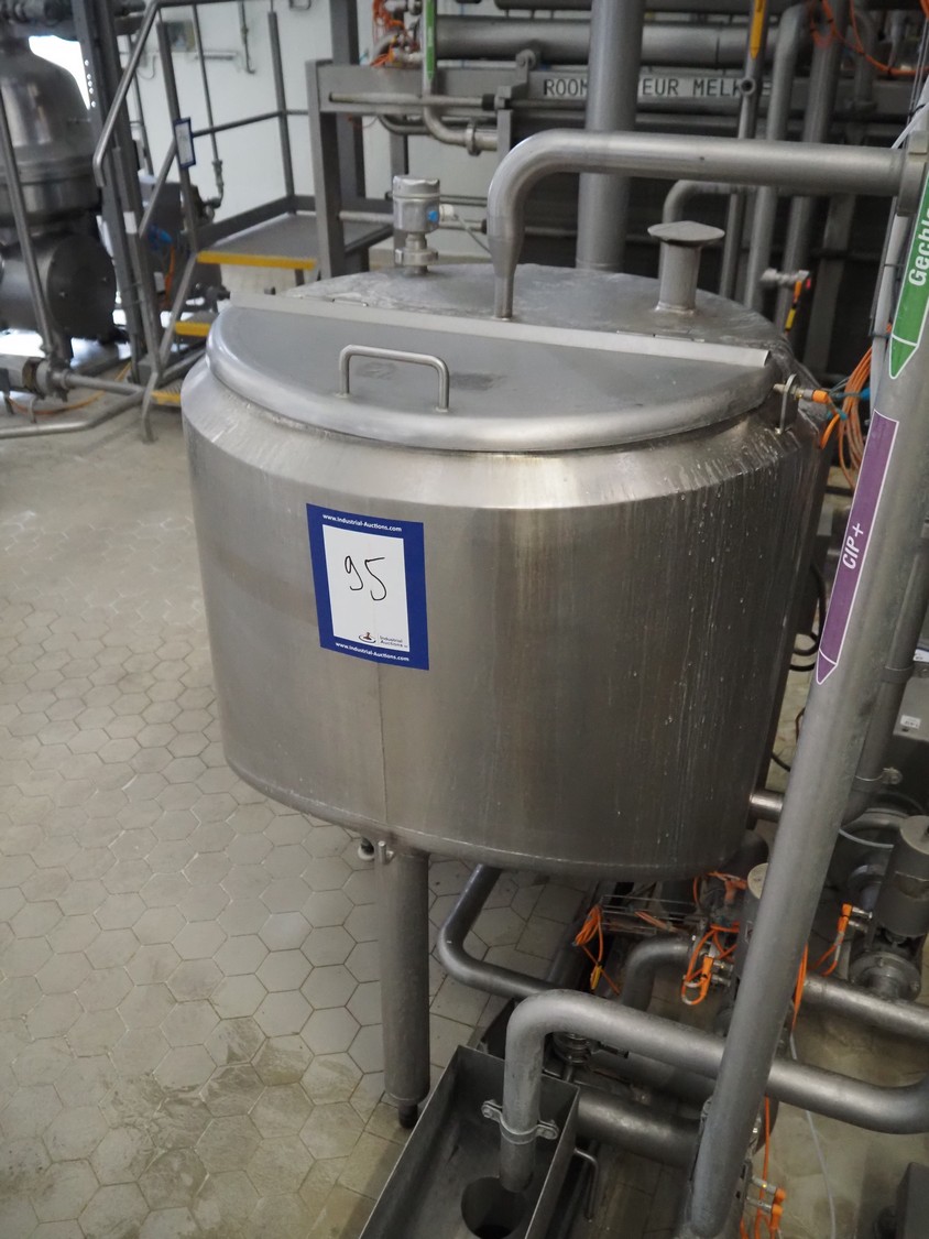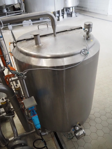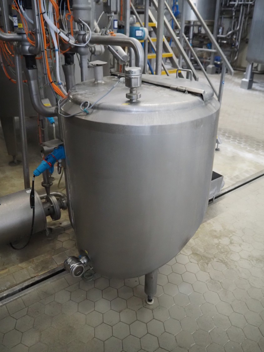 S/s double jacketed tank, tank dimensions: Ø 850 mm x 600 mm, total dimensions: Ø 900 mm x 1600 mm.