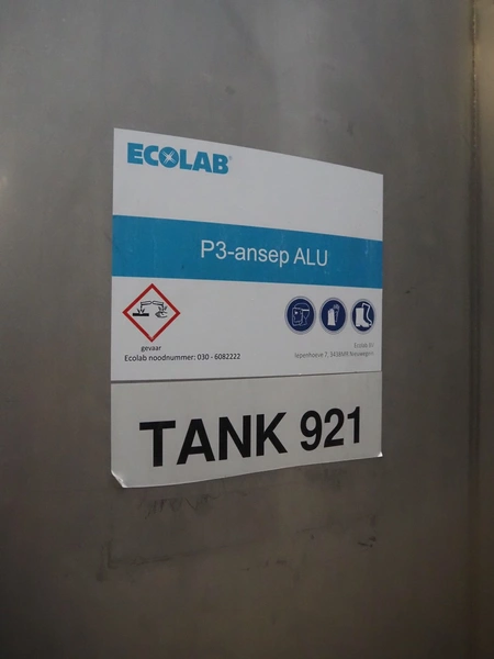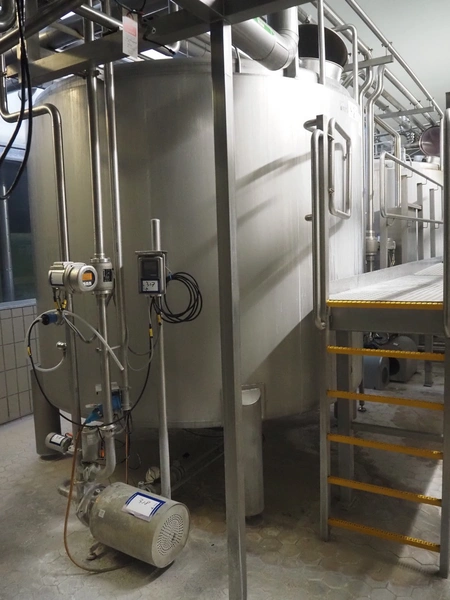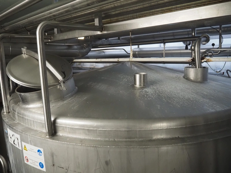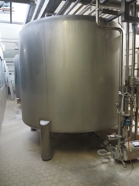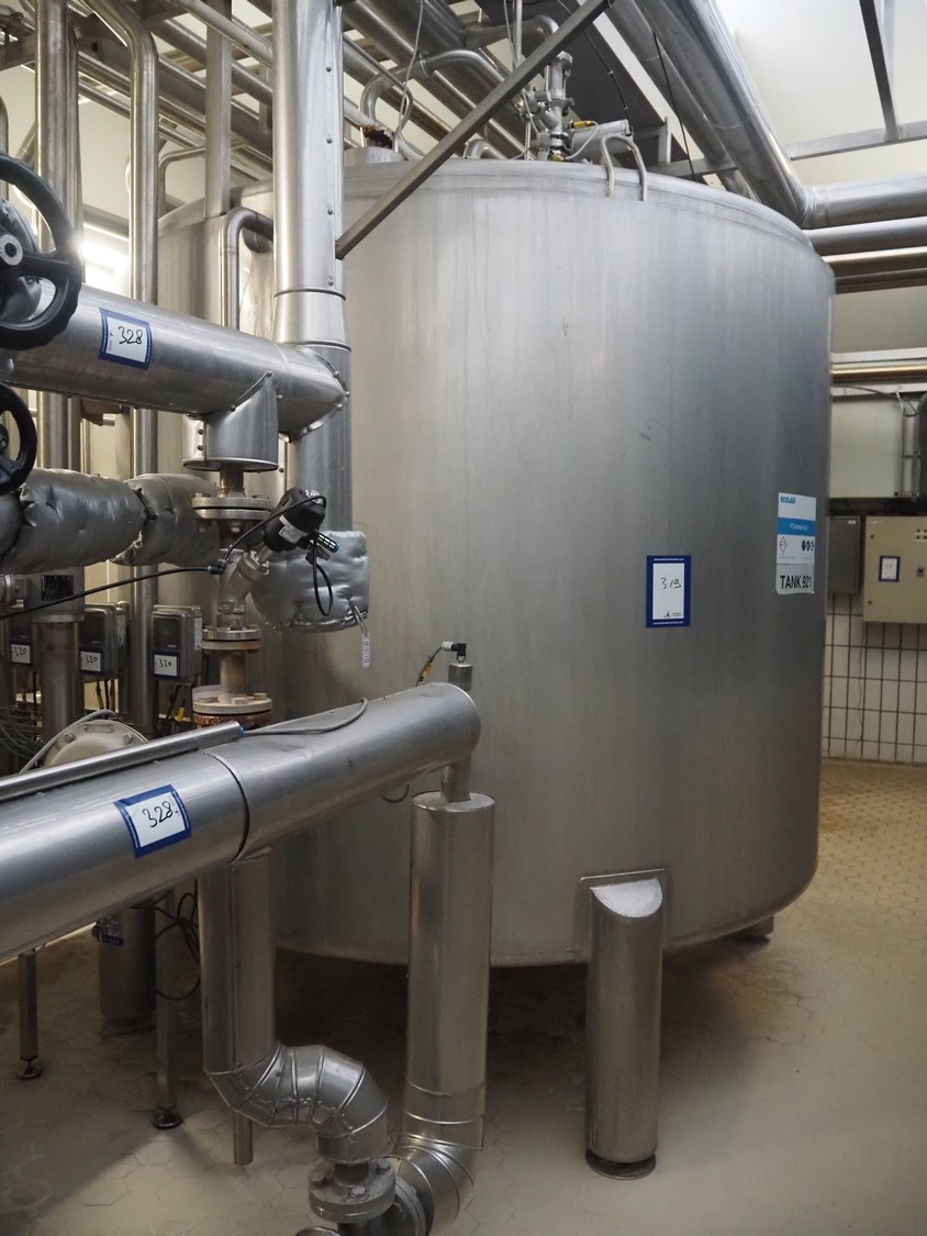 S/s insulated CIP tank, tank dimensions: Ø 2500 mm x 2100 mm, total dimensions: 2700 mm x 3100 mm.
