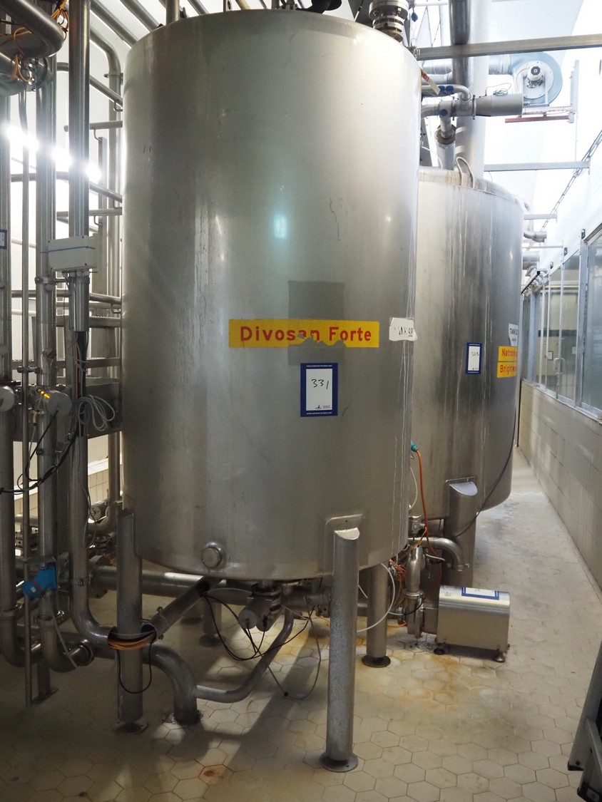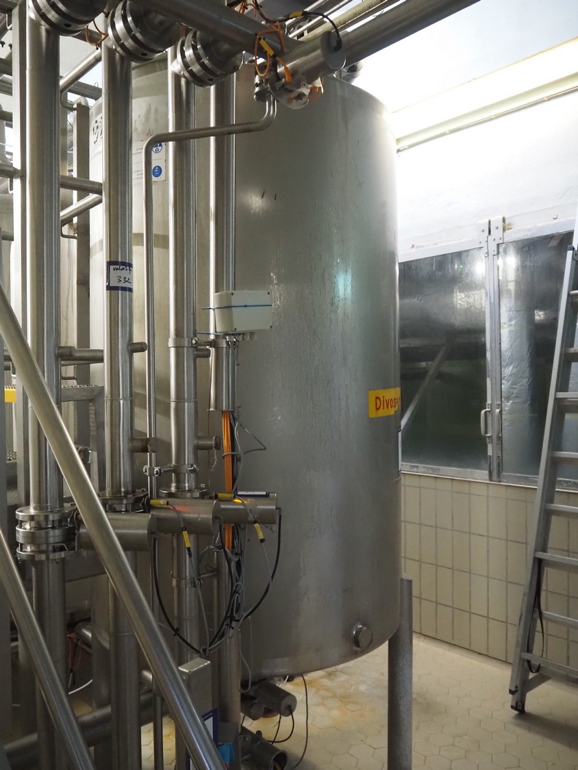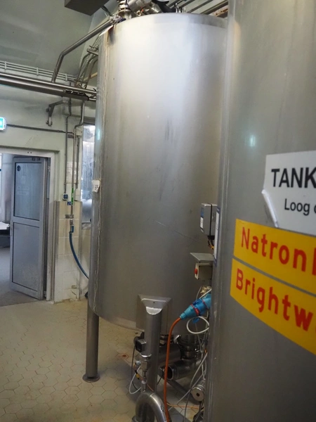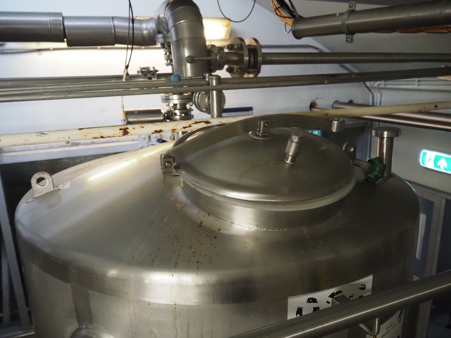 S/s CIP tank, tank dimensions: Ø 1250 mm x 2200 mm, total dimensions: Ø 1400 mm x 3150 mm.