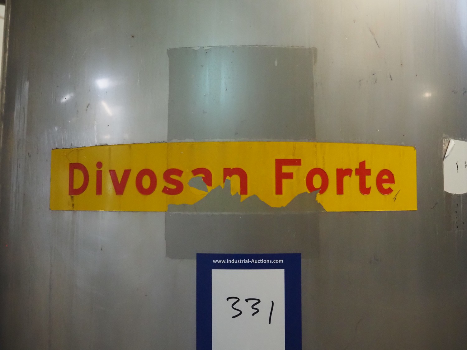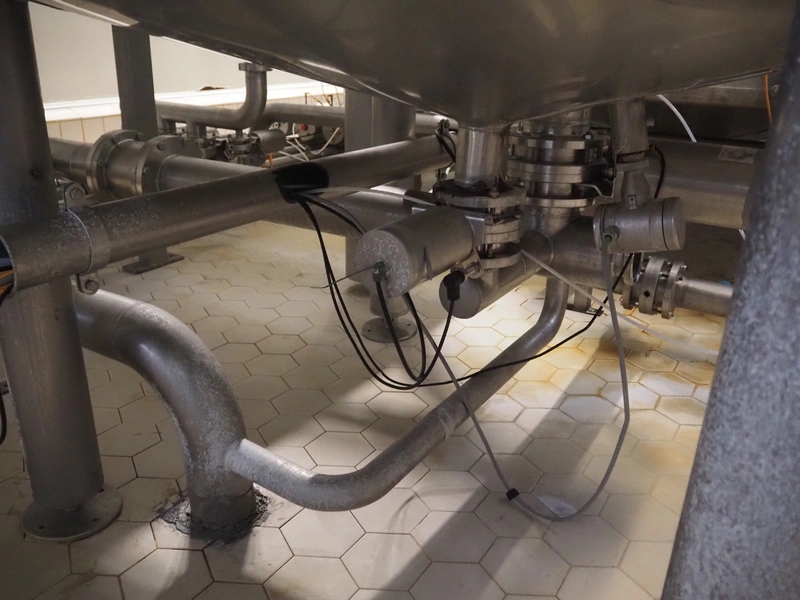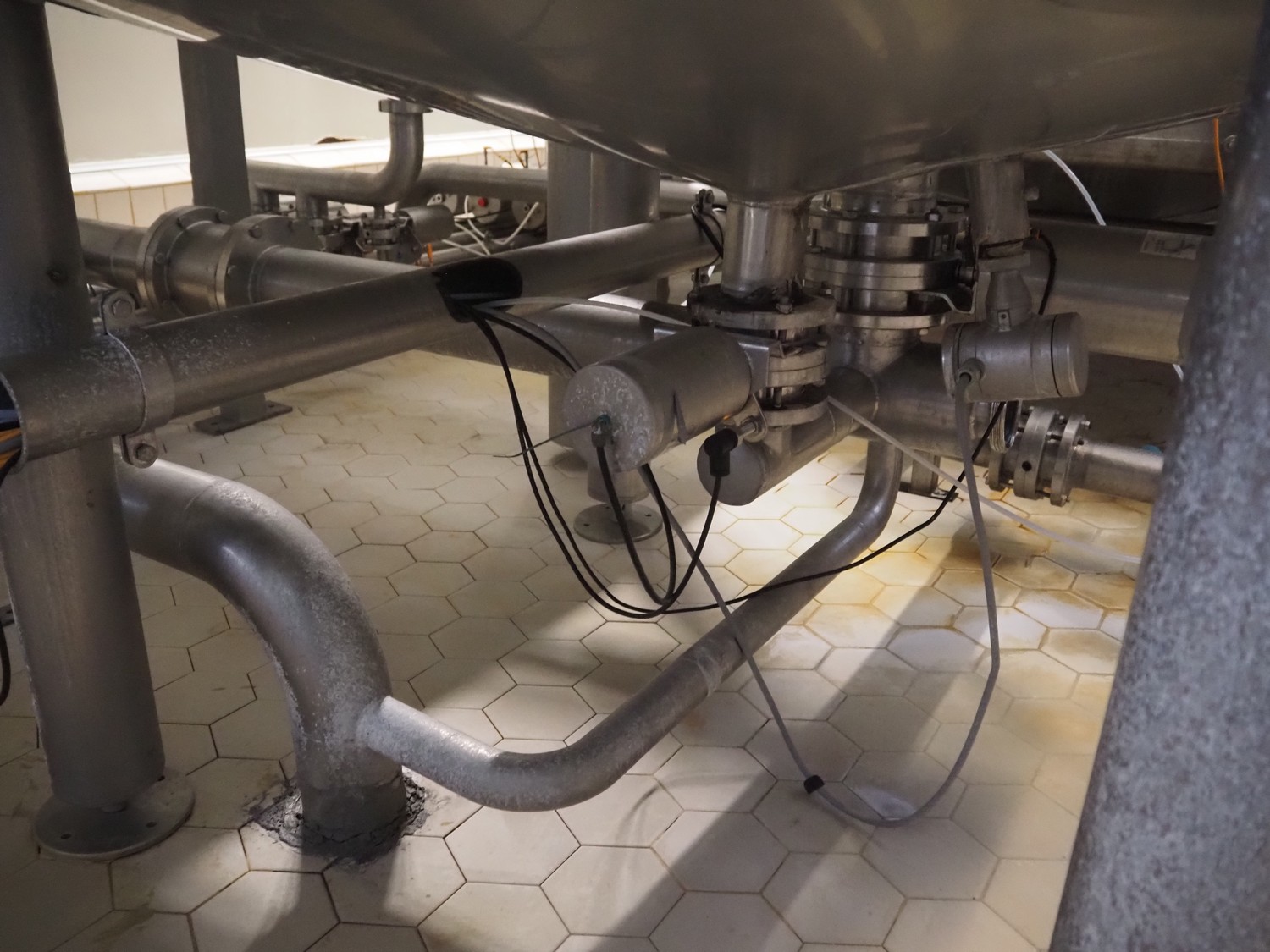 S/s CIP tank, tank dimensions: Ø 1250 mm x 2200 mm, total dimensions: Ø 1400 mm x 3150 mm.