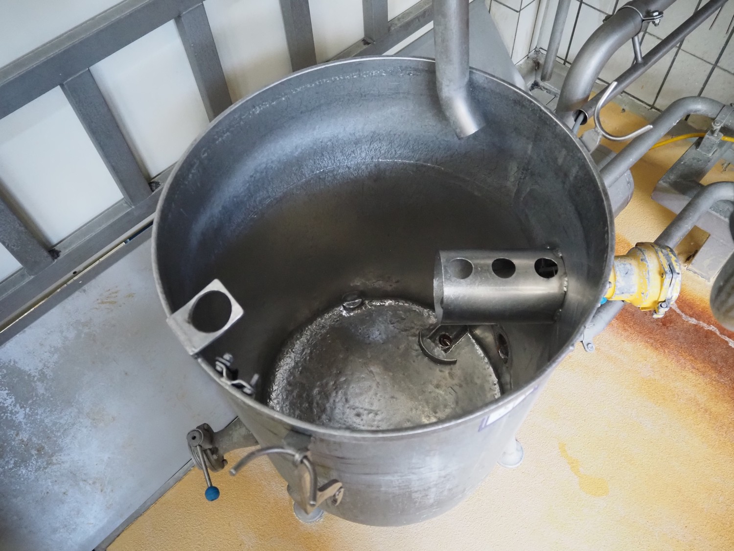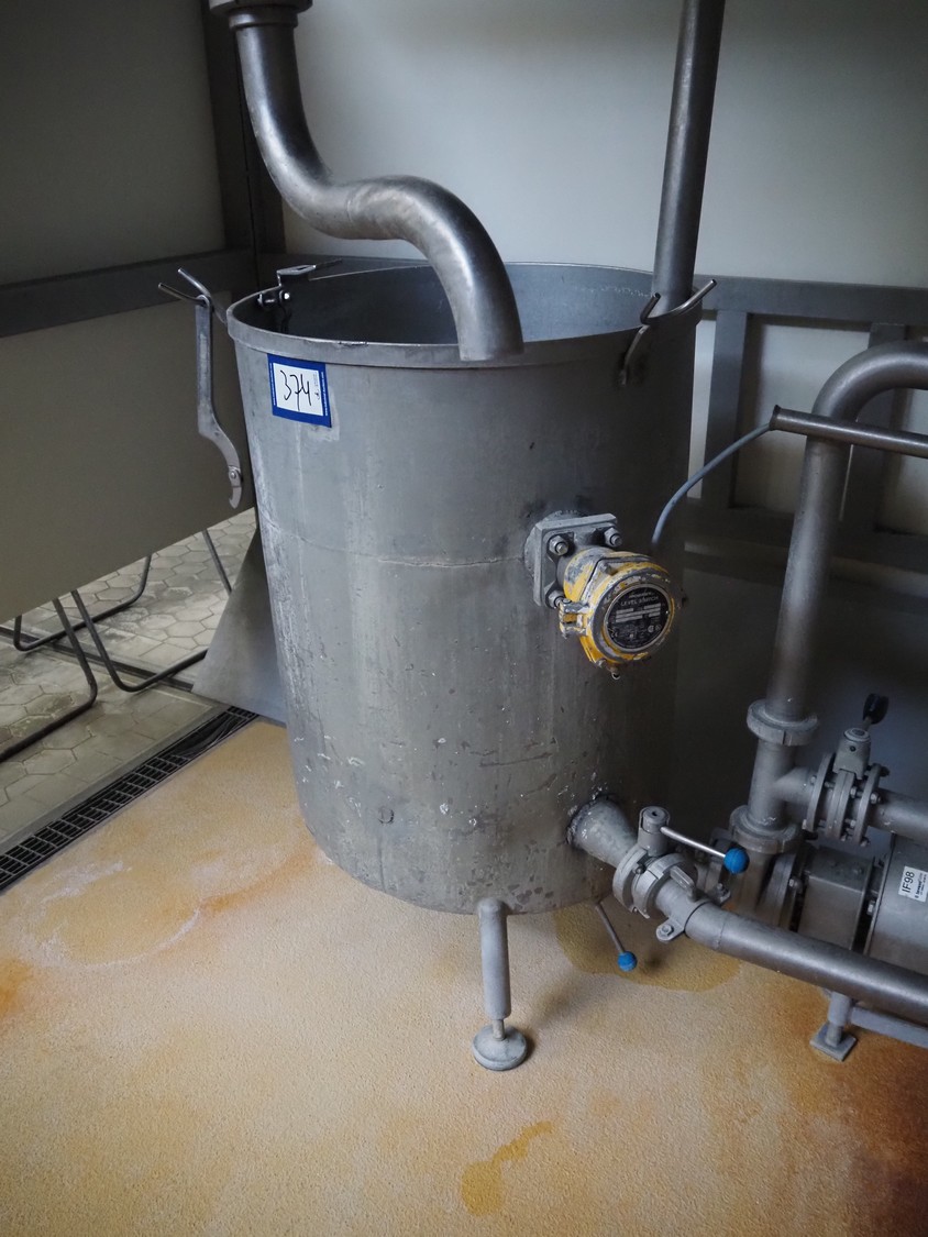 S/s tank, inside dimensions: Ø 580 mm x 800 mm, total dimensions: 950 mm x 600 mm x 1050 mm.