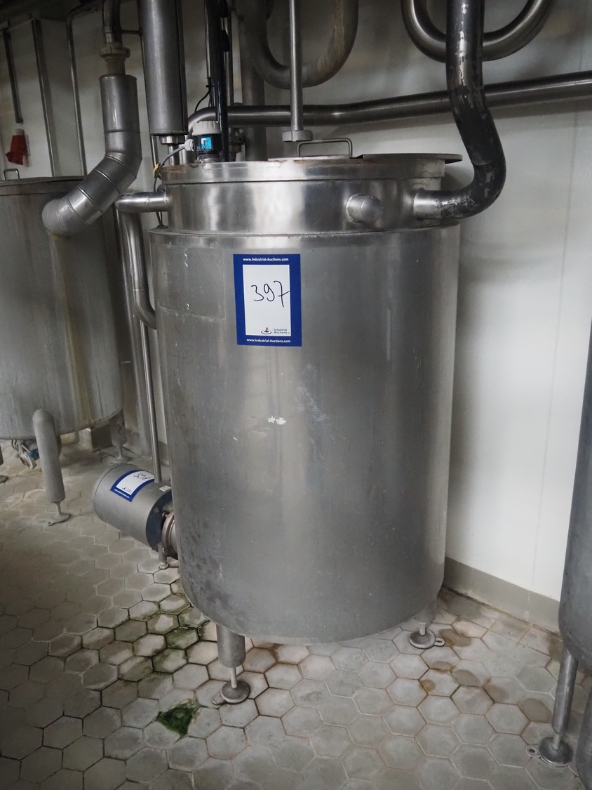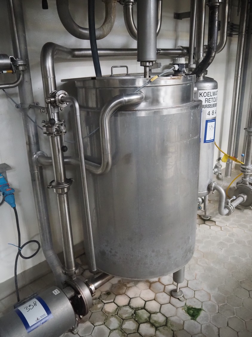 S/s tank, inside dimensions: Ø 700 mm x 150 mm, total dimensions: Ø 800 mm x 1500 mm.