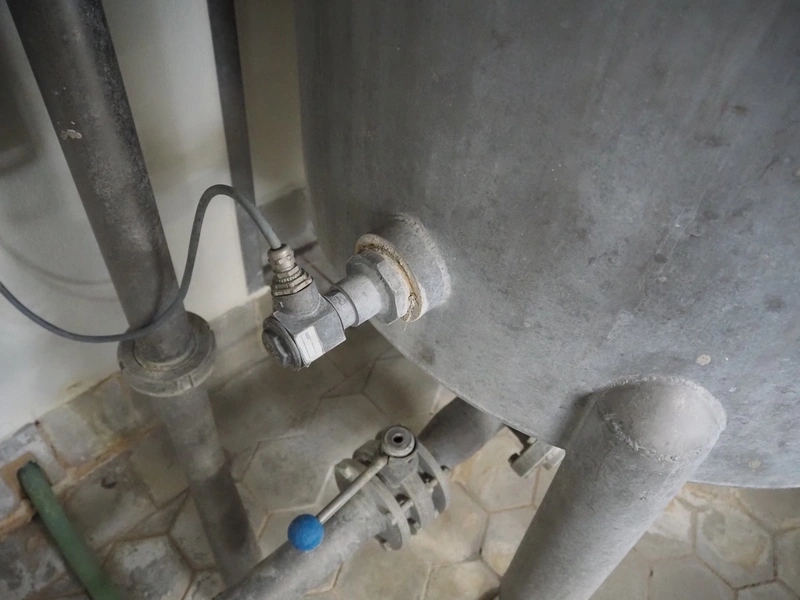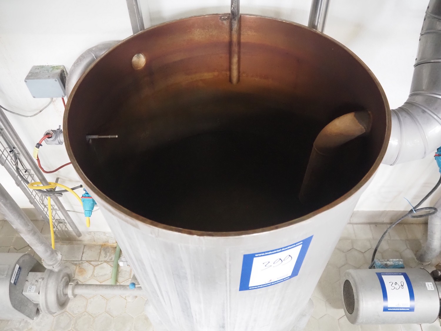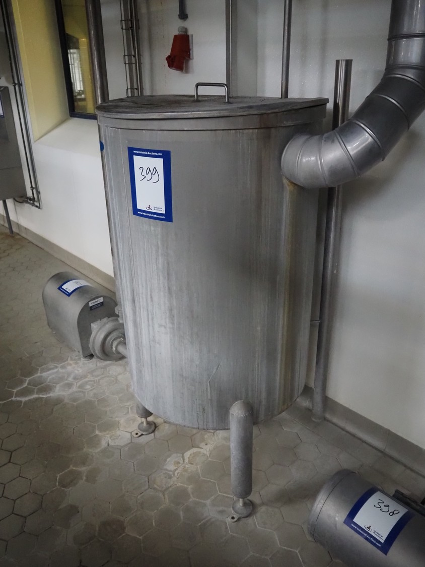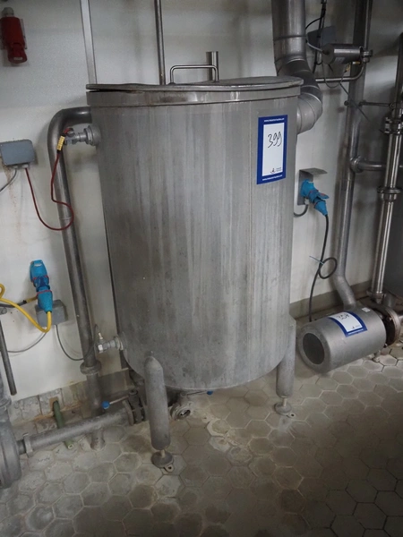 S/s tank, inside dimensions: Ø 650 mm x 1000 mmm, total dimensions: 900 mm x 750 mm x 1500 mm.