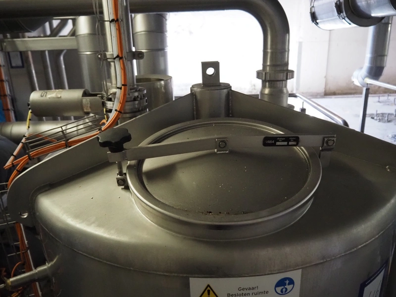 Miba s/s tank, number: 14583 00, inside dimensions: Ø 1100 mm x 1150, total dimensions: Ø 1150 mm x 2050 mm.