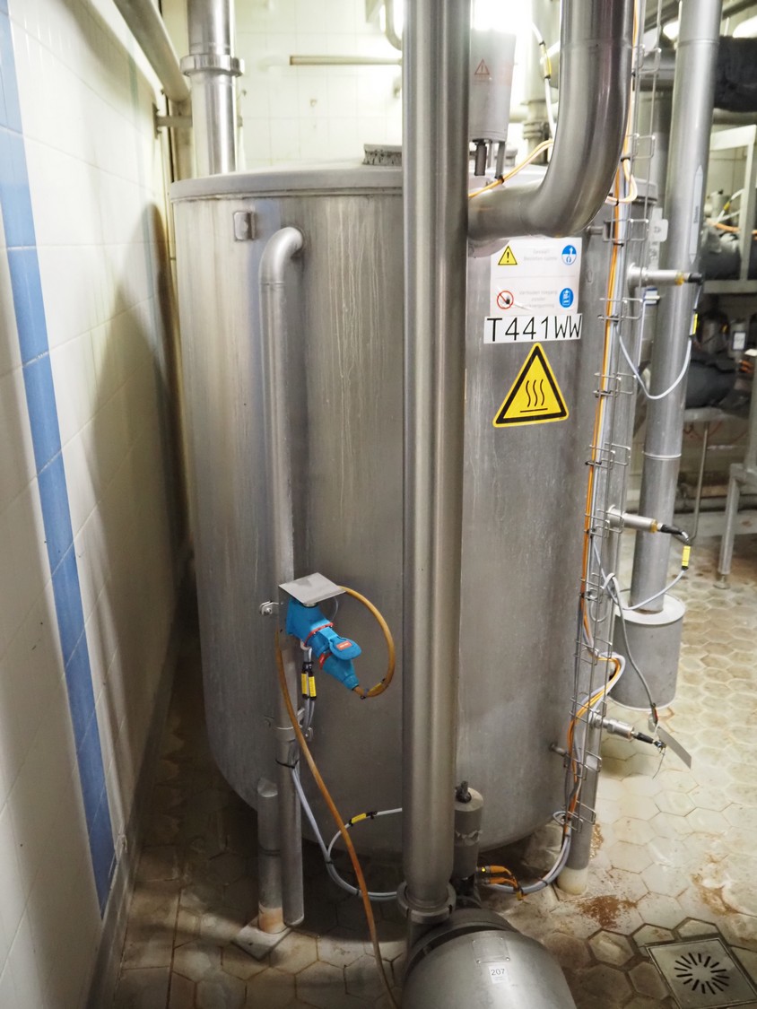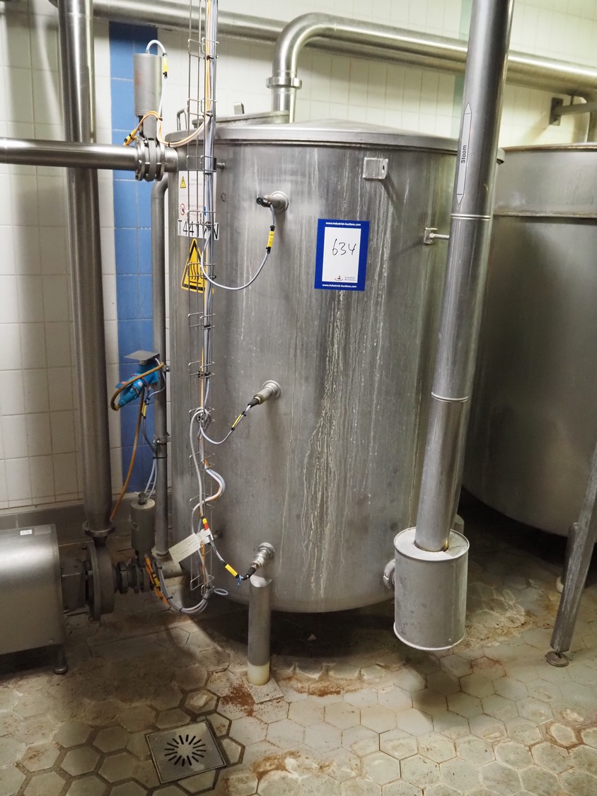 S/s tank, dimensions: Ø 1200 mm x 1900 mm.