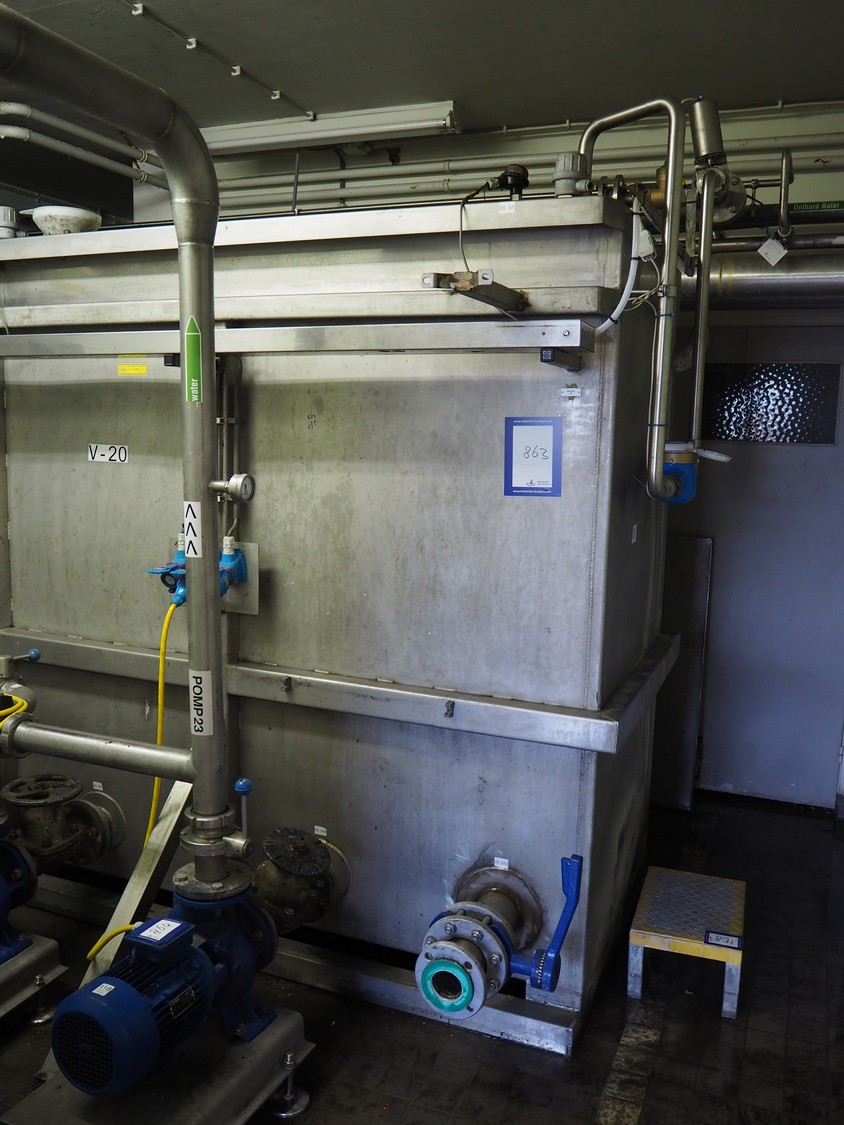 MHG s/s water tank, dimensions: 4000 mm x 1100 mm x 2100 mm.