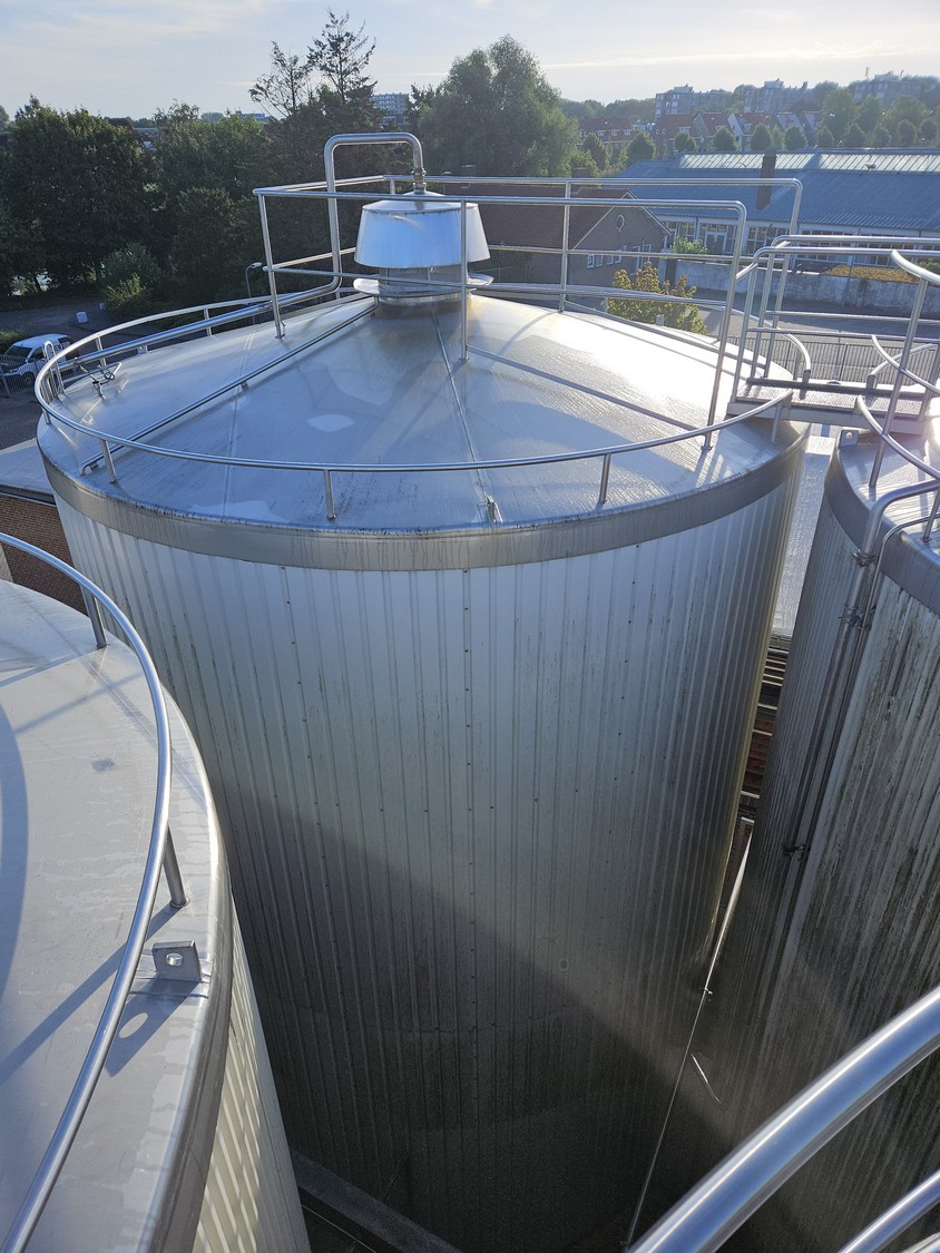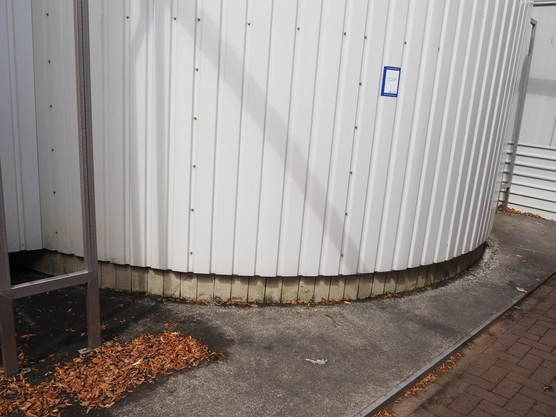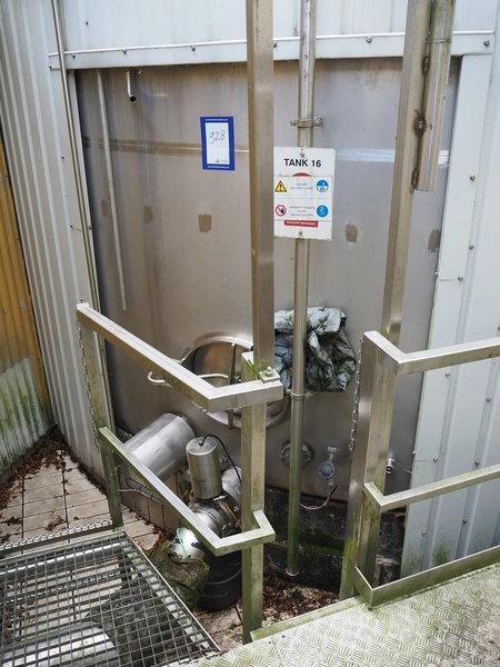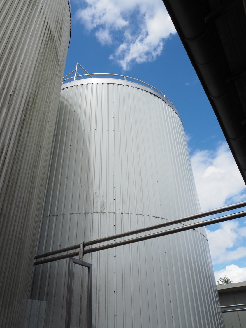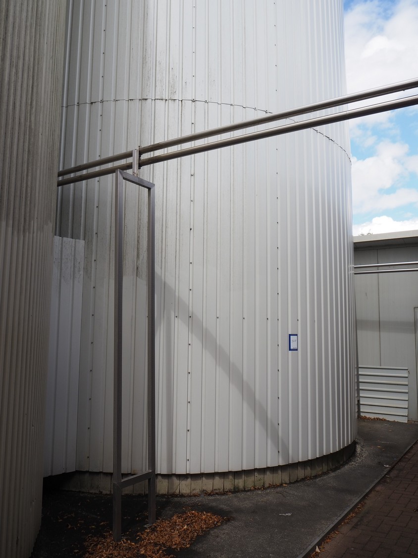 Insulated storage tank used for raw milk and butter milk, volume: approximately 230.000 litre, dimensions: Ø 6300 mm x 10750 mm.