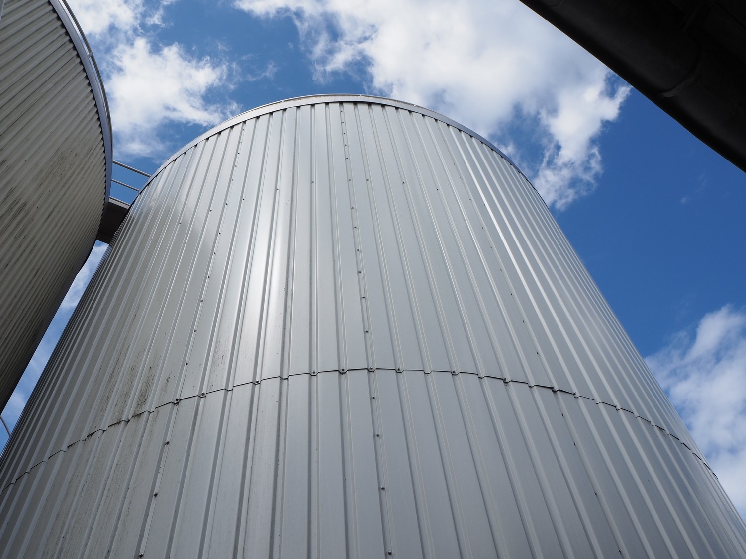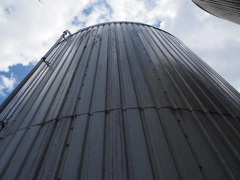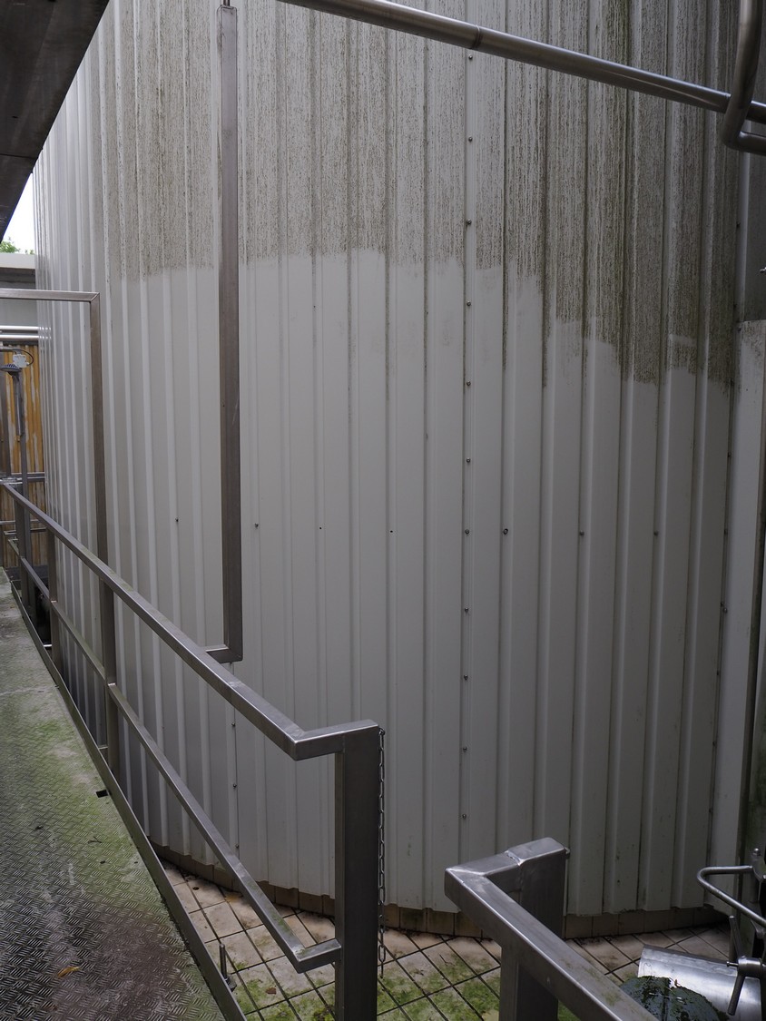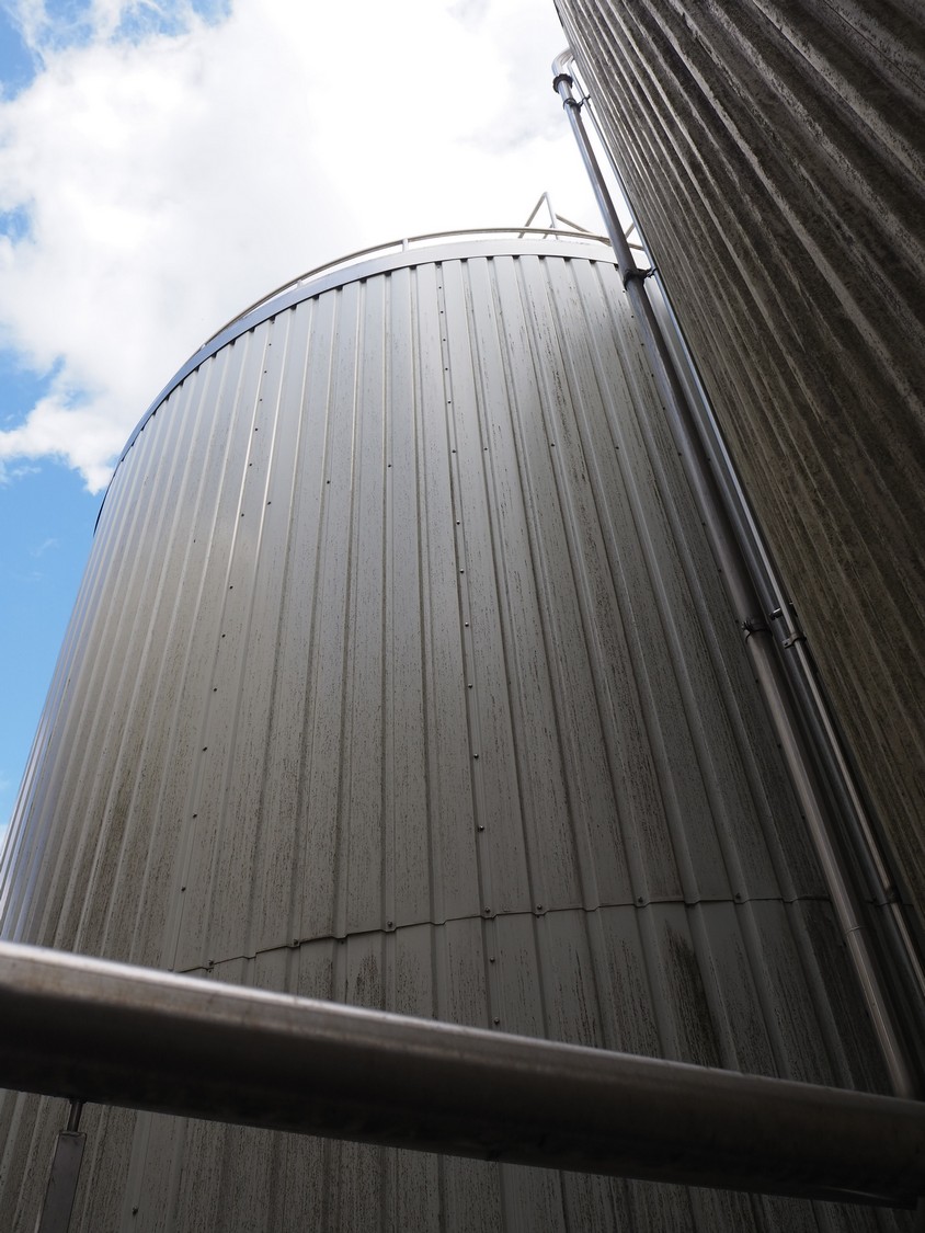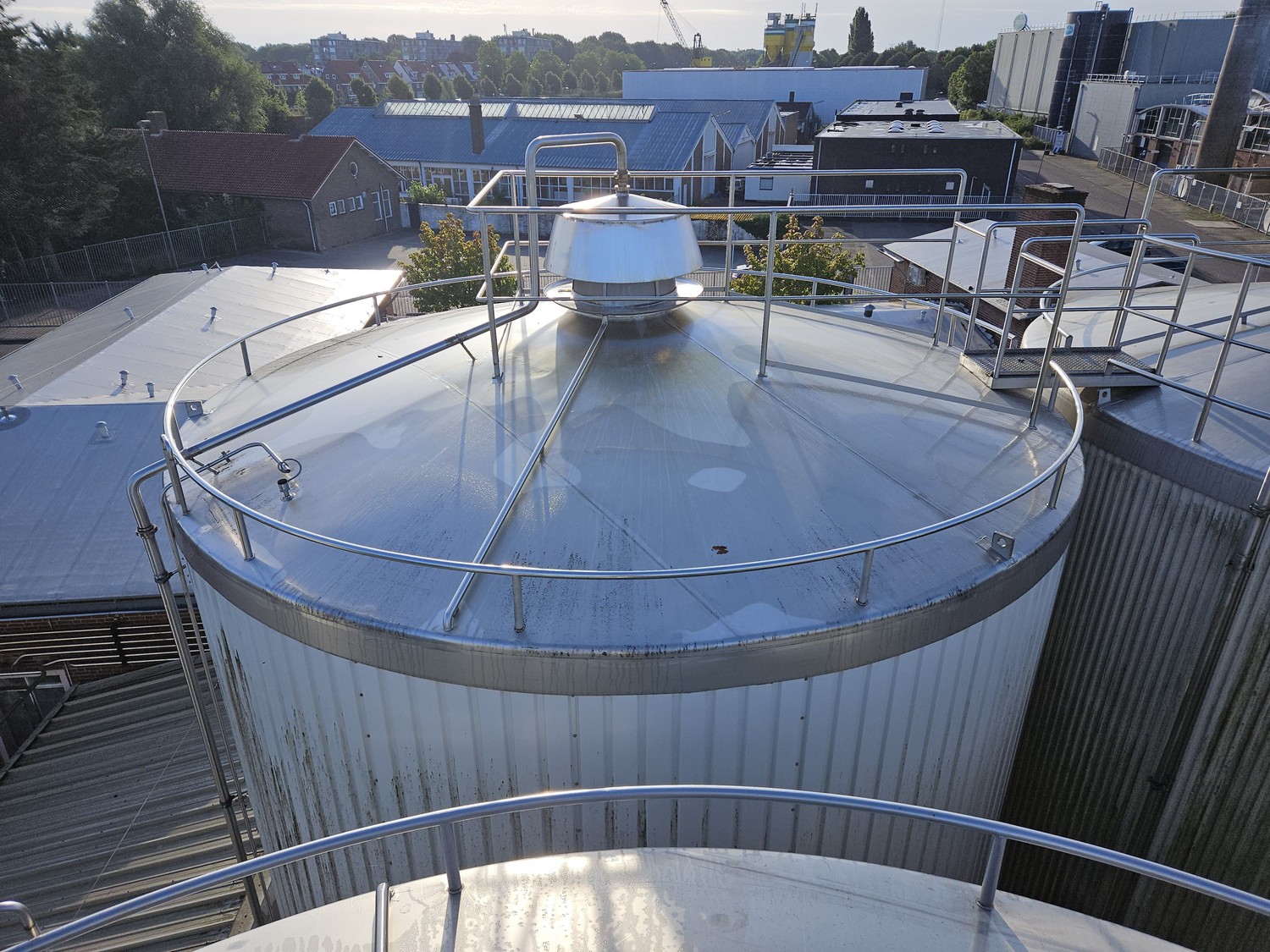 Insulated storage tank used for raw milk and butter milk, volume: approximately 230.000 litre, dimensions: Ø 6300 mm x 10750 mm.
