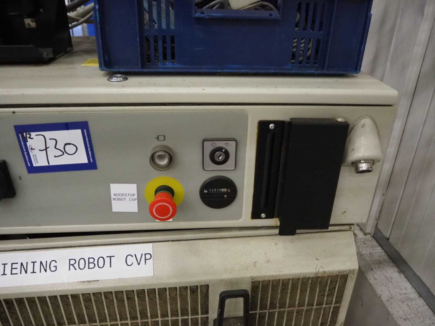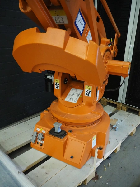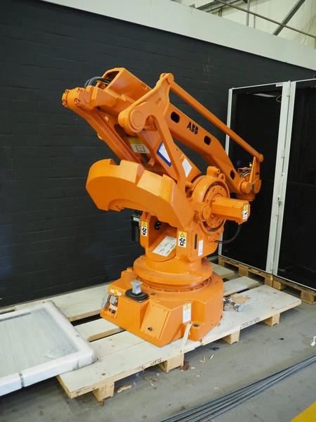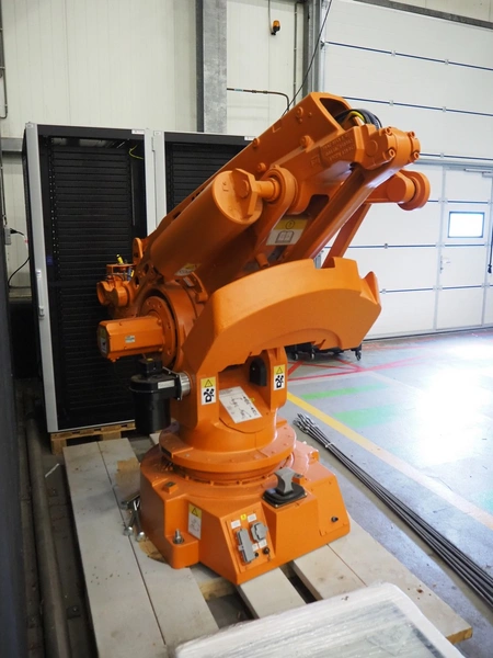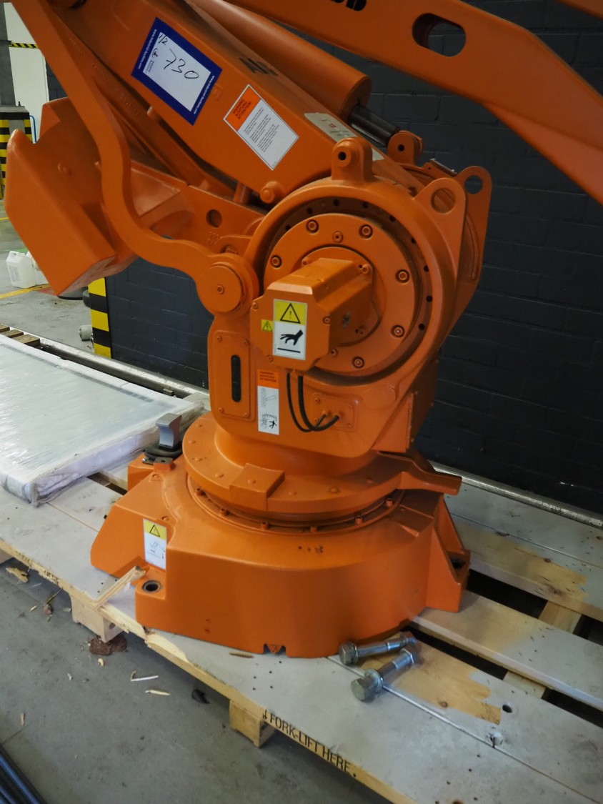 ABB industrial robot, type: IRB640 M2000, serial number: 64Z-20331, year of construction: 2018/12/12, weight: 1950 kg, dimensions: 2100 mm x 1100 mm x 1900 mm, with control box, type: IRB640 M2000, serial number: 64Z-20474, year of construction: 2003/05/06, weight: 350 kg, dimensions: 800 mm x 500 mm x 950 mm.