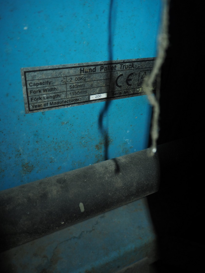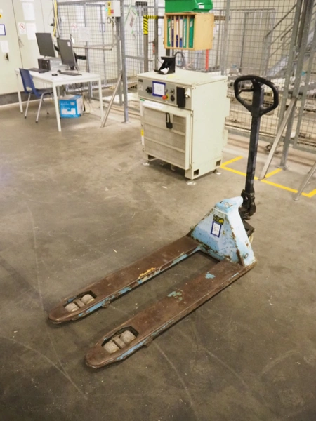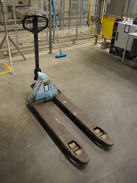 Steel pallet lifter, year of construction: 2000, capacity: 2000 kg, fork length: 1150 mm, total dimensions: 1500 mm x 540 mm x 1250 mm.
